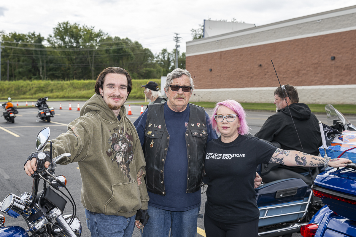 Damien Kline, Robert Linzenfelter, and Renee Linzenfelter at the 43rd Annual Leslie W. Watson Memorial Toy Run. September 14, 2024. (Jeff Danault)