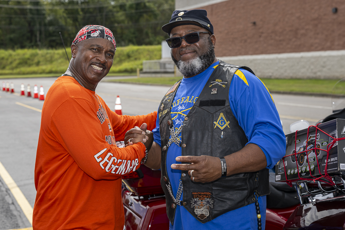Tyron McDonald and John Henry Newberry at the 43rd Annual Leslie W. Watson Memorial Toy Run. September 14, 2024. (Jeff Danault)