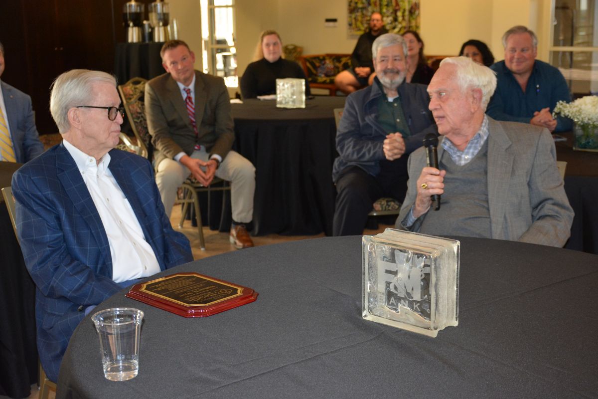 Bill Wyatt and Ben Kimbrough at a reception honoring Bill Wyatt for his contributions to the community and the announcement of an endowment, the Bill Wyatt Distinguished Professorship Award by the Clarksville-Montgomery County Community Health Foundation, to APSU on, Oct 19, 2022. (Lee Erwin).