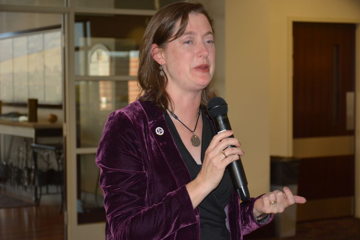 Marcy Maurer, Dean of the College of Behavioral & Health Sciences at Austin Peay at a reception honoring Bill Wyatt for his contributions to the community during the announcement of an endowment, the Bill Wyatt Distinguished Professorship Award by the Clarksville-Montgomery County Community Health Foundation, to APSU on, Oct 19, 2022. (Lee Erwin).