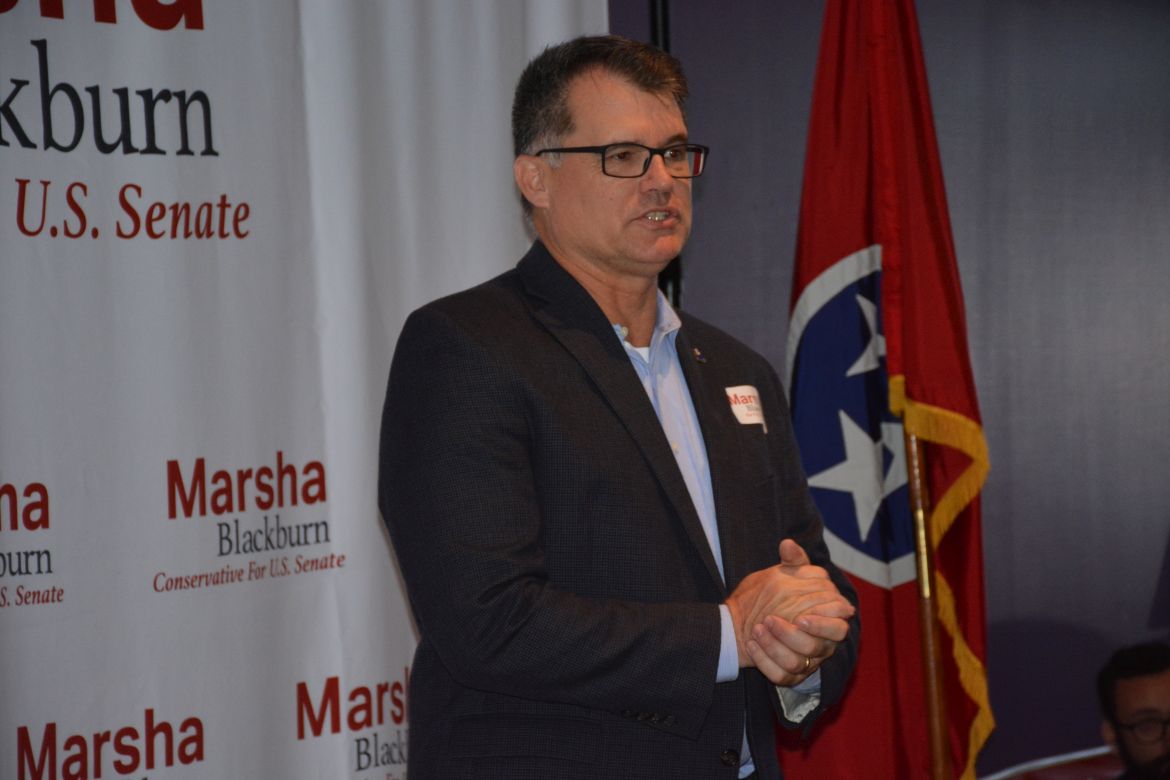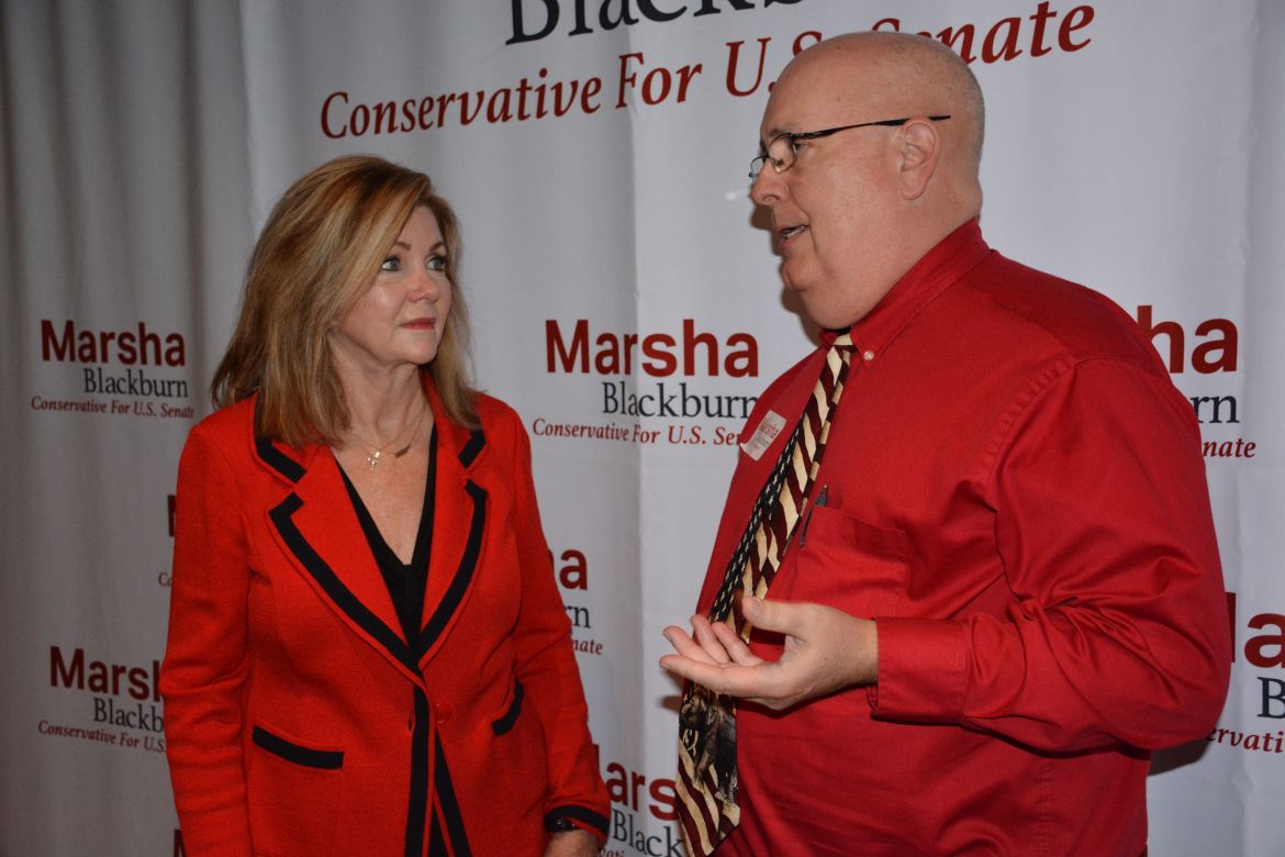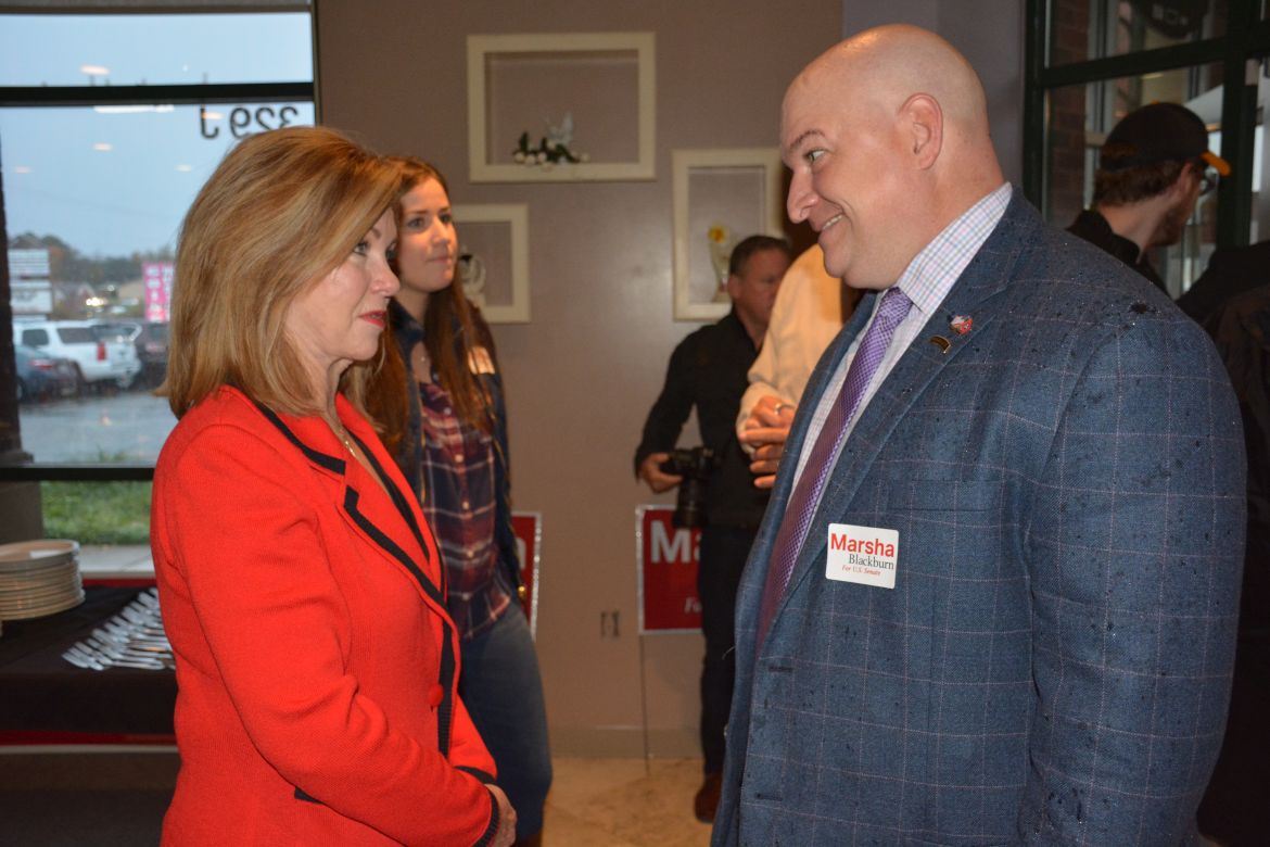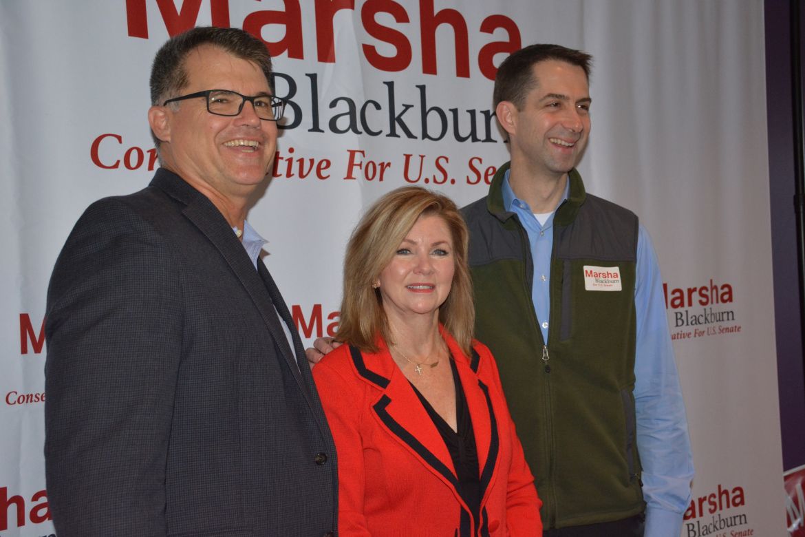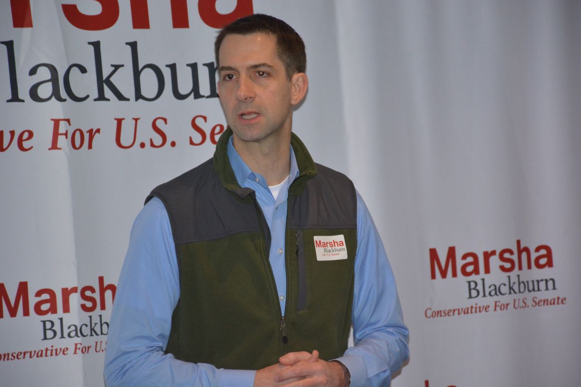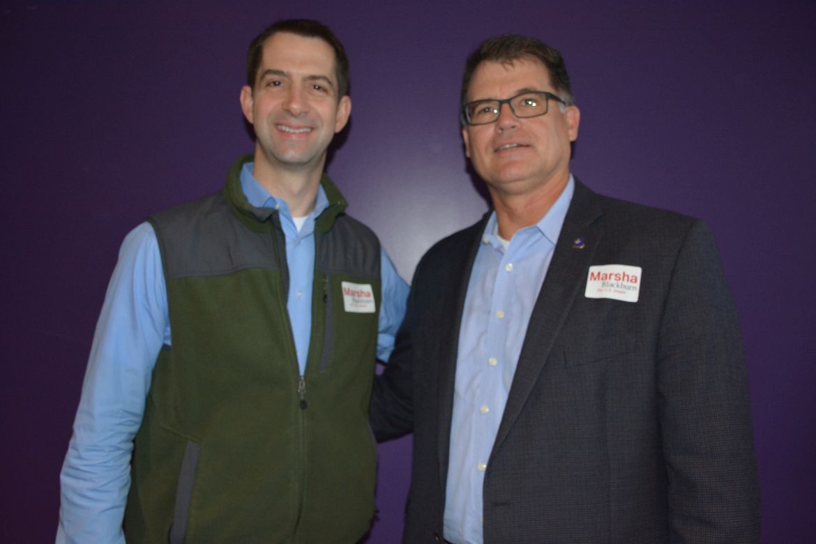 Blackburn is running for the U.S. Senate seat in Tennessee held by Senator Bob Corker, who did not seek reelection, and Senator Cotton is a former 101st soldier who served at Fort Campbell. The pair spoke about support for the military to a crowd of about 60 people.