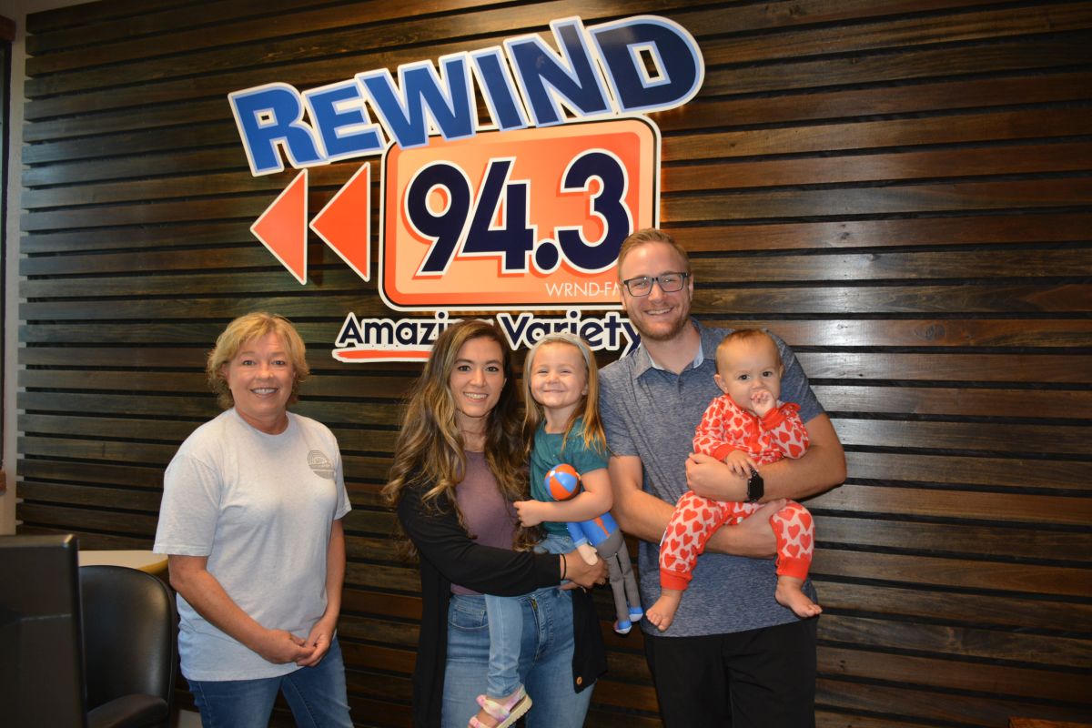 The Breil family along with morning air personality Monica Reed on Rewind 94.3 talking about the Blippi in my Hometown contest on Fri July 8, 2022. (Lee Erwin)