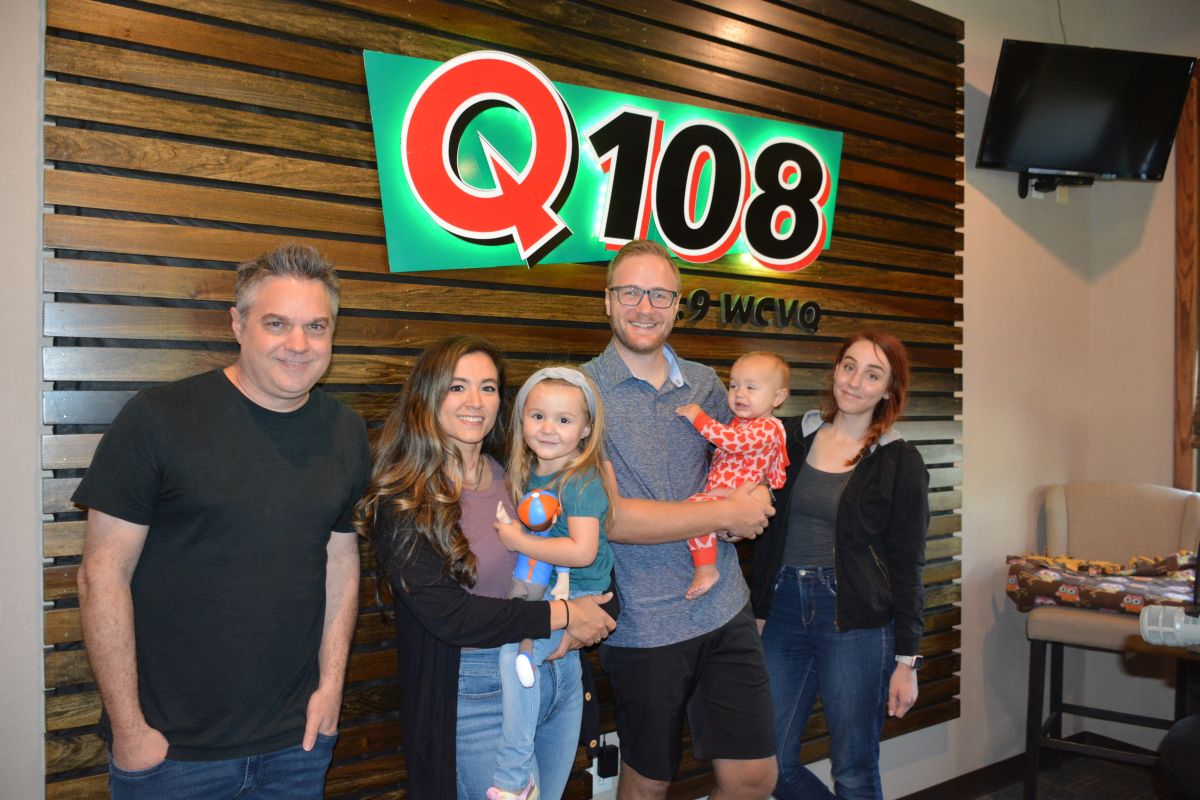 The Breil family along with Q108 morning air personalities Tommy Jordan and Katie Jay talking about the Blippi in my Hometown contest on Fri July 8, 2022. (Lee Erwin)