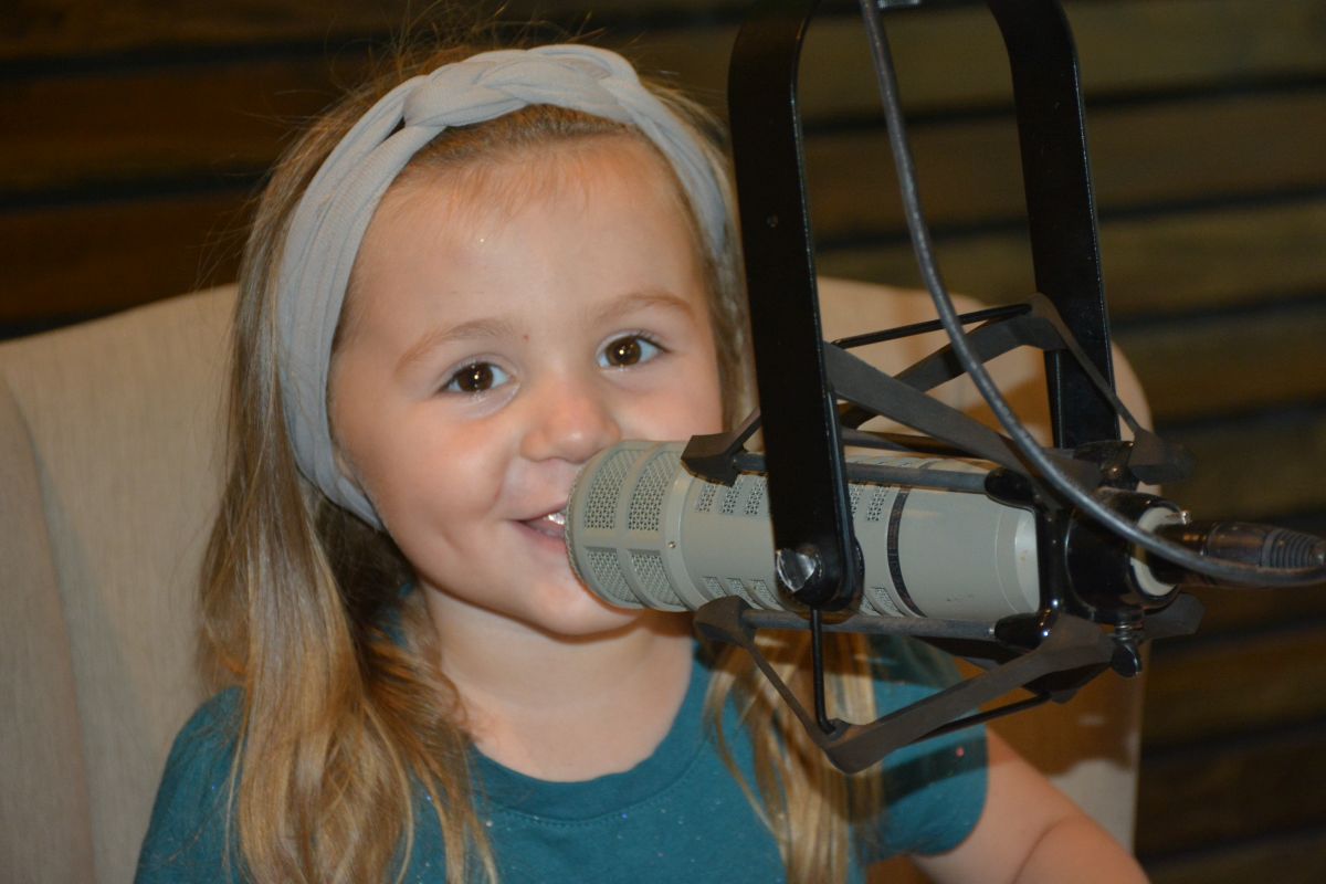 Layla Breil on Q108 with morning air personalities Tommy Jordan and Katie Jay talking about the Blippi in my Hometown contest on Fri July 8, 2022. (Lee Erwin)