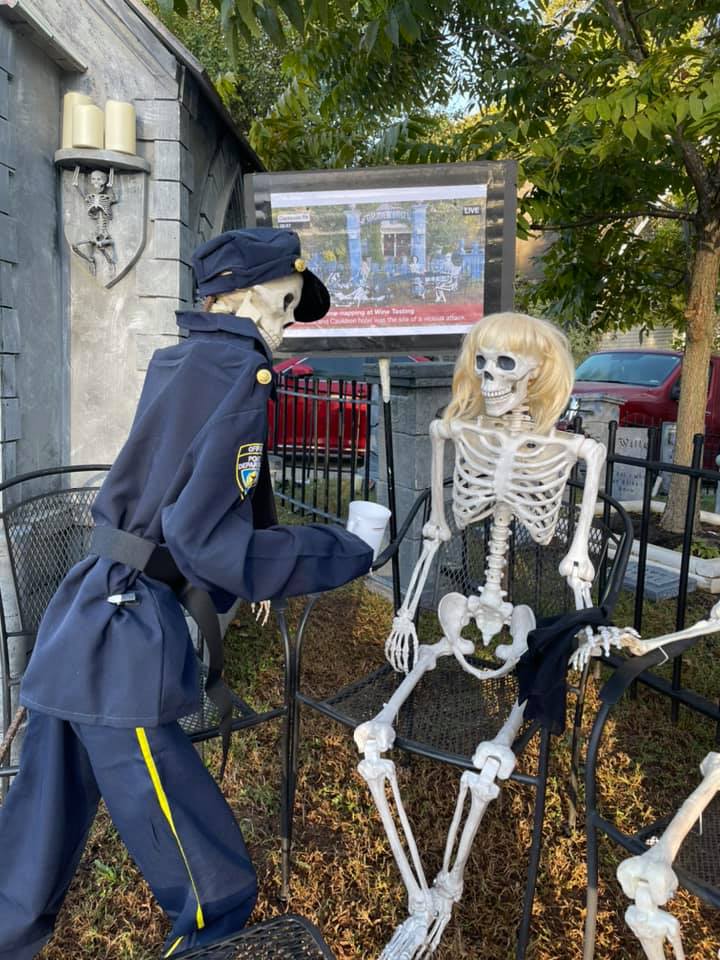 CLARKSVILLE, TN (CLARKSVILLENOW) – Every night, Sarah Garcia and her crew set up a new scene for the Bones Family, their big Halloween skeleton display. Friday night was no different as they were arranging for the Boneses to do a wine tasting.