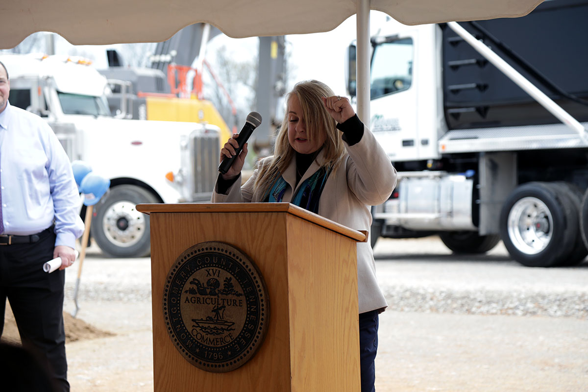 Montgomery County Library Director, Christina Riedel, speaks during the groundbreaking ceremony for the future location of the new library and animal shelter in north Clarksville, March 22, 2024. (Jordan Renfro)