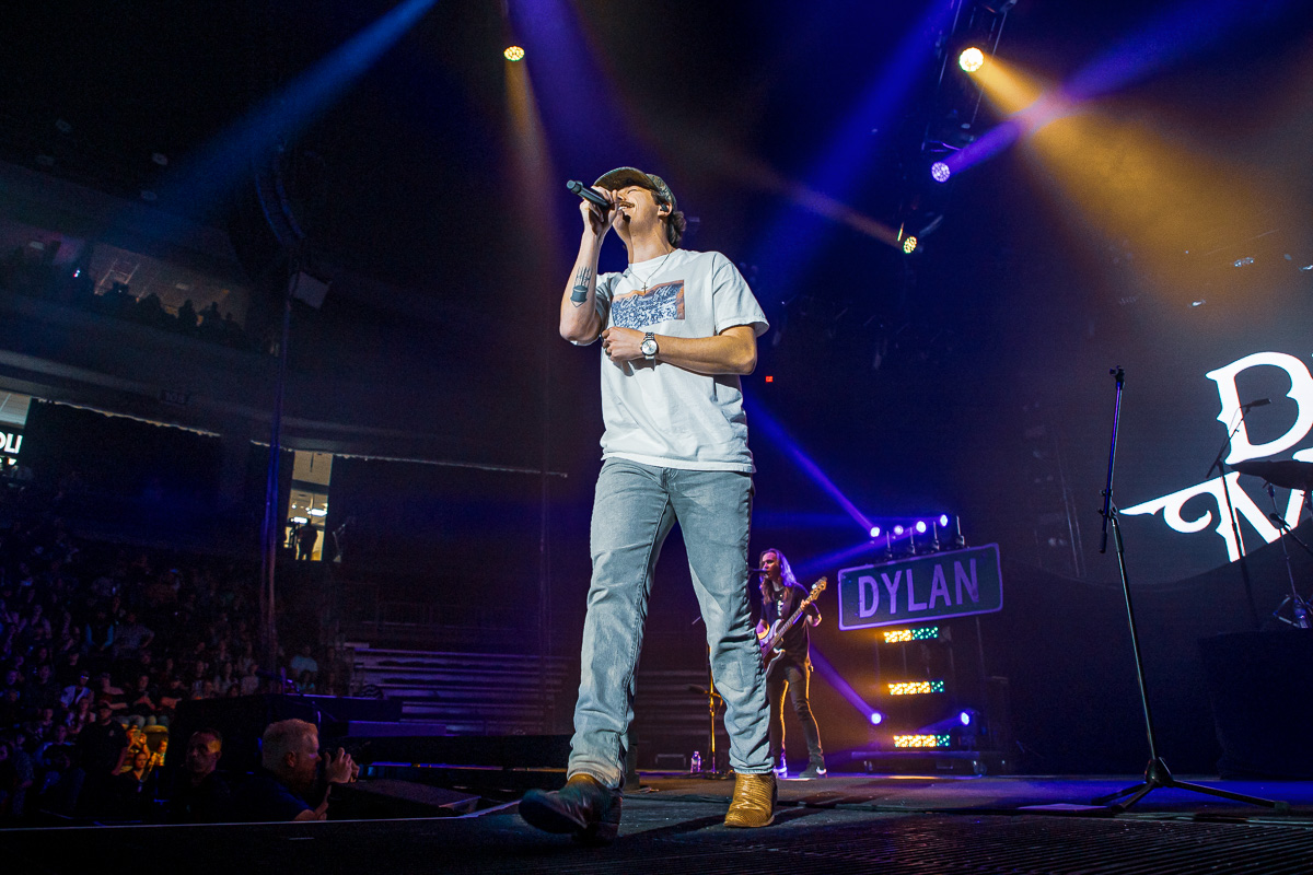 Dylan Marlowe performs at Brantley Gilbert’s “Off the Rails Tour” at F&M Bank Arena on April 11, 2024. (Wesley Irvin)