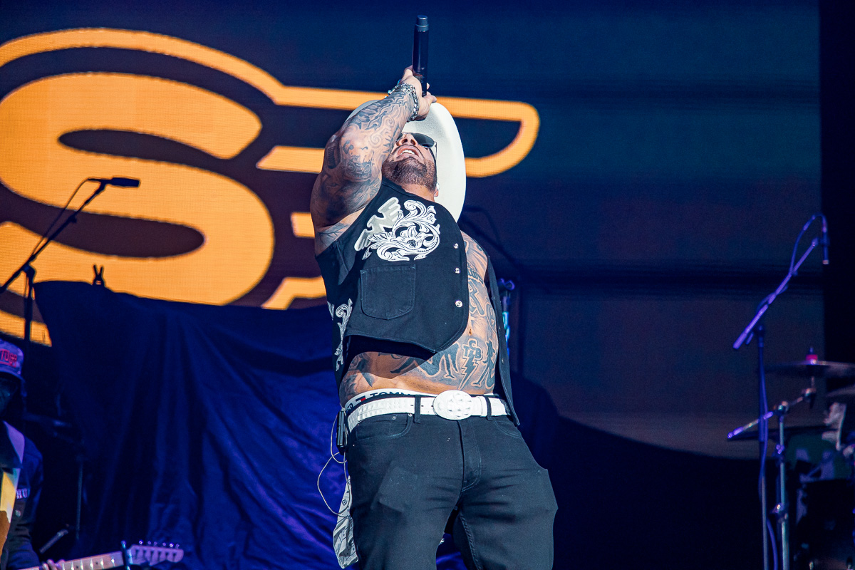 Struggle Jennings performs at Brantley Gilbert’s “Off the Rails Tour” at F&M Bank Arena on April 11, 2024. (Wesley Irvin)
