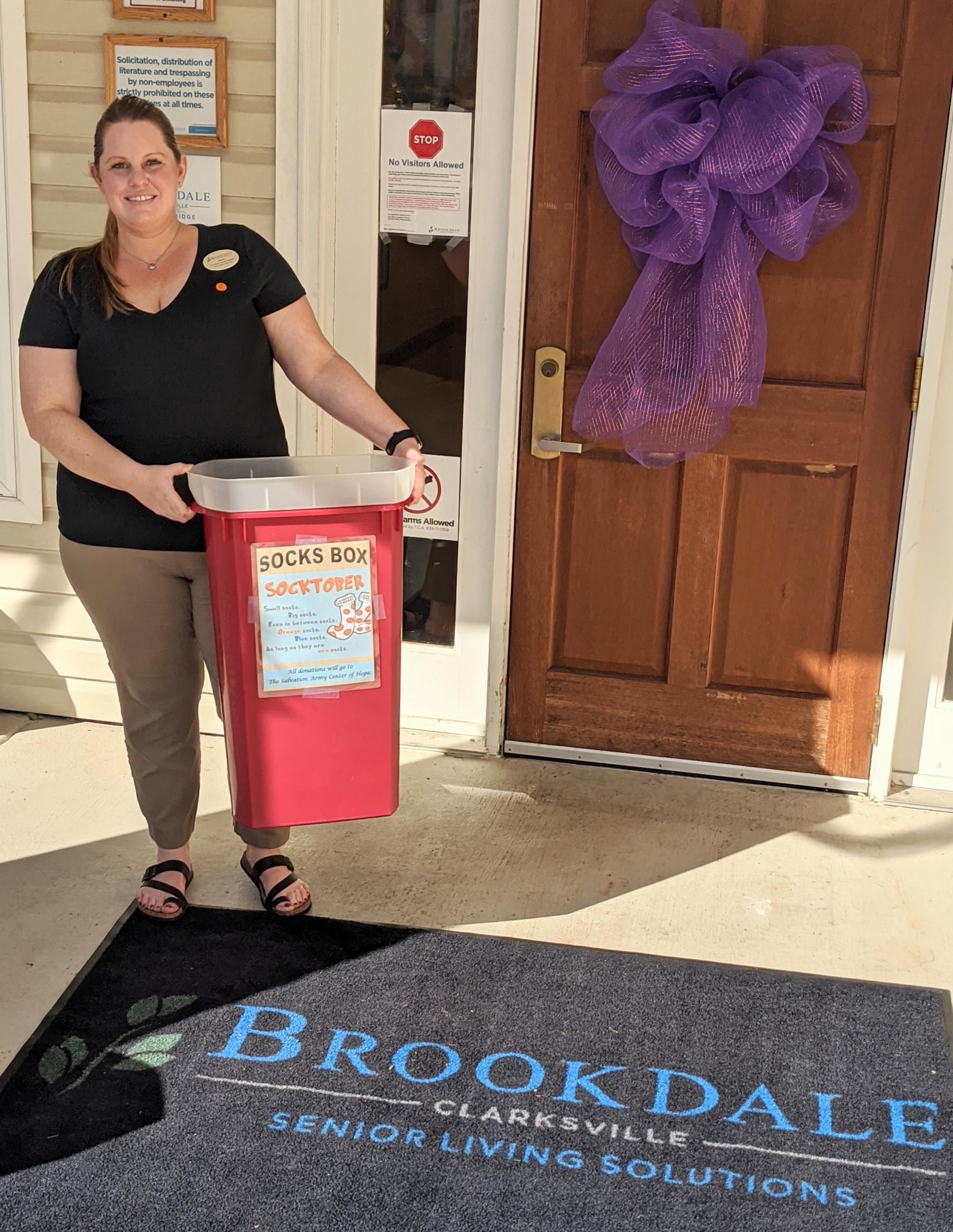 Dearden, now the program manager at Brookdale Senior Living Solutions of Clarksville, grew up inspired by her father’s acts of kindness and his heart for those in need. She is professionally and personally committed to serving others and implemented Socktober.
