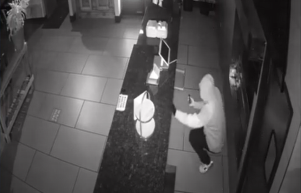 Later that night, around 2:19 a.m., a burglar matching the same description of the suspect was caught on camera breaking into Hot Pita, which is located at 1803 Madison Street.