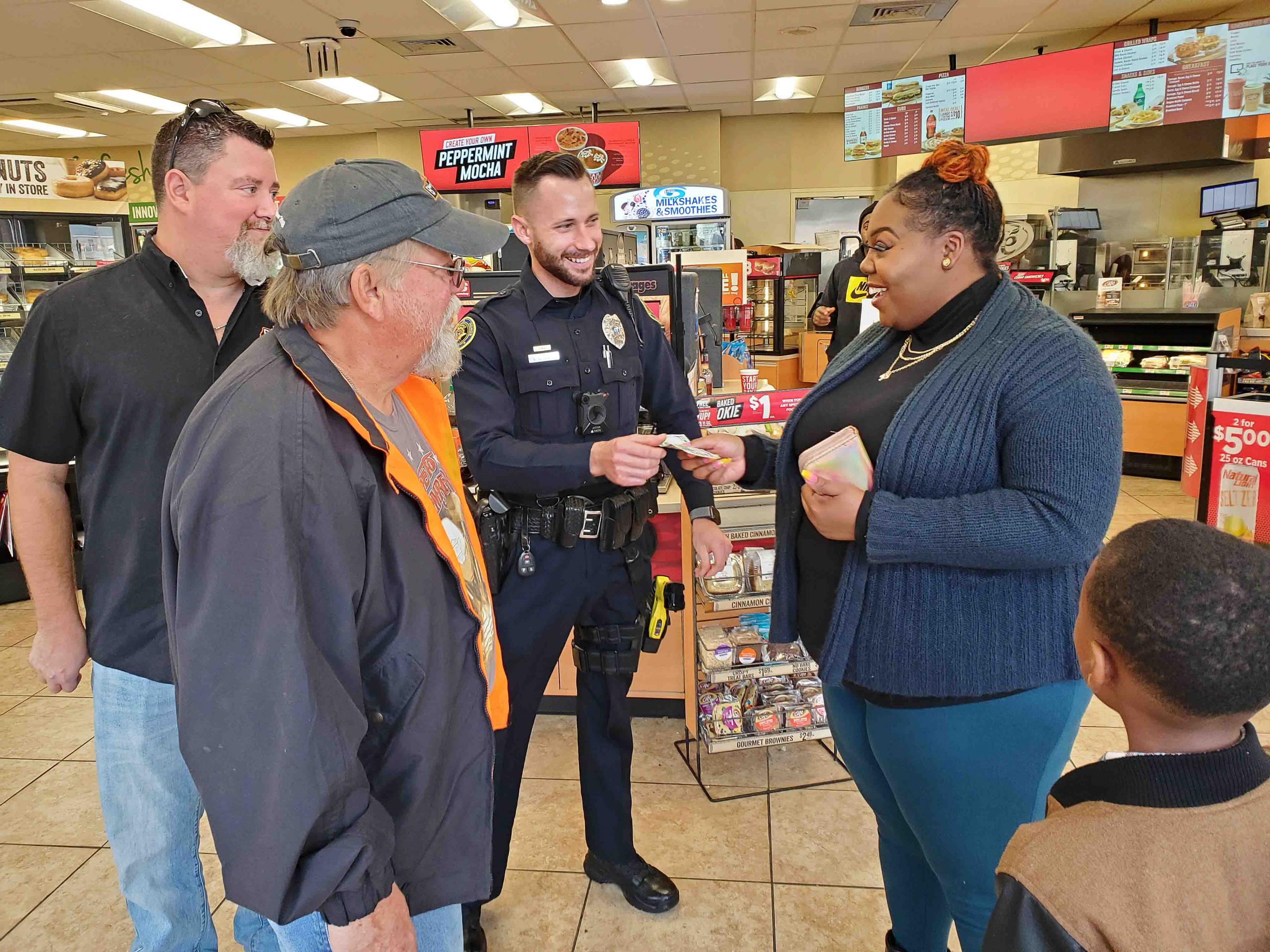 On December 14, at locations throughout the community, members of the BWC and law enforcement approached random strangers and presented them with a crisp $100 bill. The recipients were at first leery when approached, which evolved into shock, then elation with some breaking down into tears of joy.