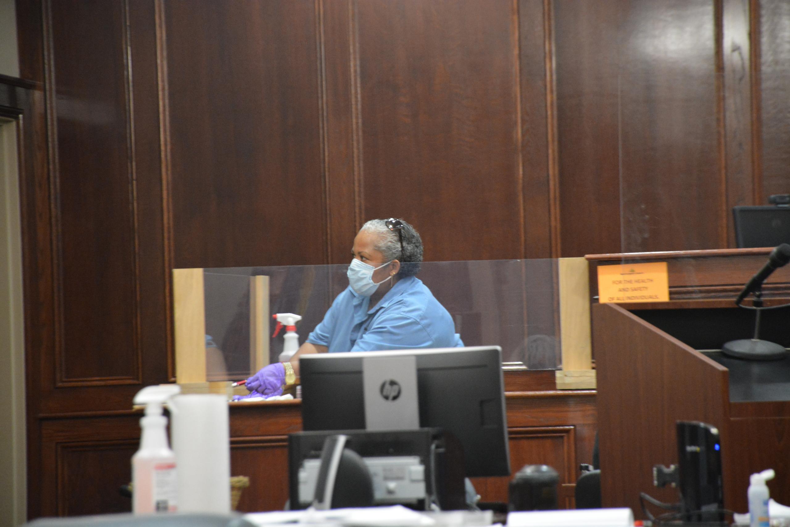 Each witness who testified could remove their mask once they were seated behind the plastic shield.