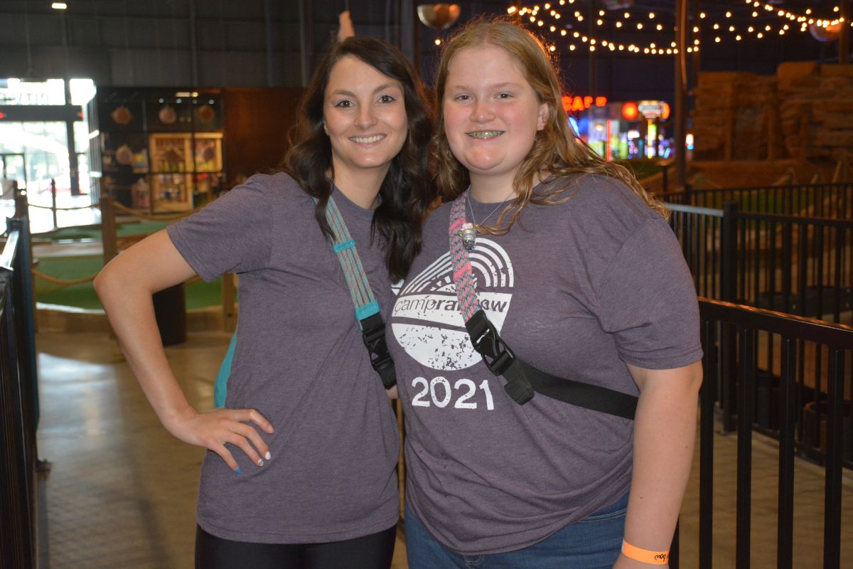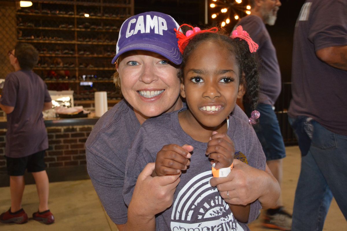 Beaver 100.3 air personality Monica Reed, takes a moment to smile for the camera with her camper friend Madison at Clarksville Camp Rainbow at The City Forum on Wed June 16 2021 (Lee Erwin).