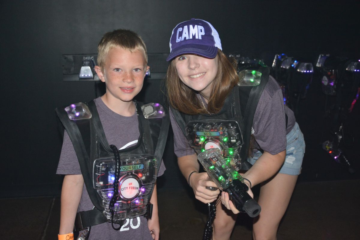 This year was what Camp Director Jereme Miner referred to as Plan B for the 25 children and close to 50 volunteers. Monday was pool day at the Clarksville Country Club, Tuesday was an outdoor carnival at Grace Community Church, and Wednesday was arcade games and an indoor softball game at The City Forum.