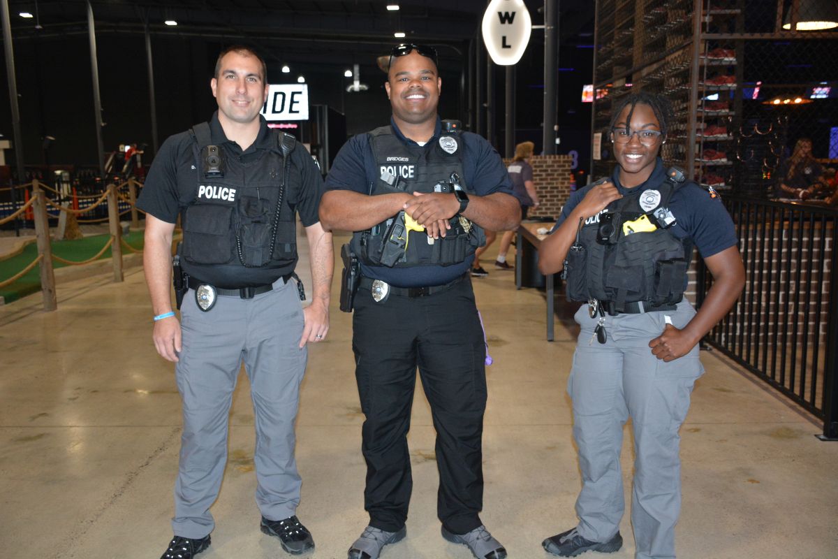 Officers with the Clarksville Police Department stopped by The City Forum and Clarksville Camp Rainbow event on Wed June 16 2021 (Lee Erwin).