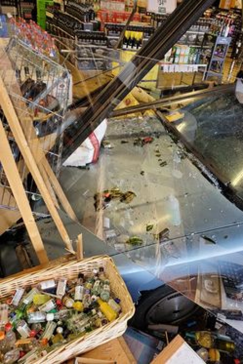 One customer, Kimberly Bornstein, was inside Caddy’s checking out at the time the car drove through the front windows.