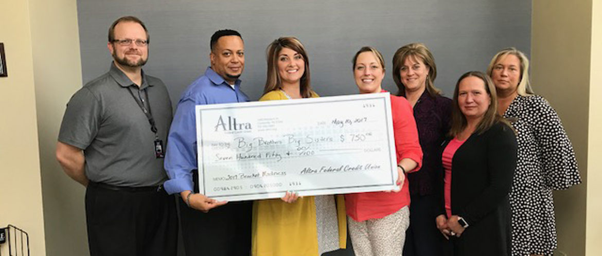 Big Brothers, Big Sisters received $750 from Altra Federal Credit Union from their Bracket Madness online fundraiser.