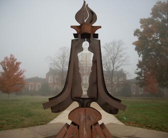 Diehr’s tin and concrete sculpture, “The Gateway,” remains an iconic part of the campus, but few people know its name or history.