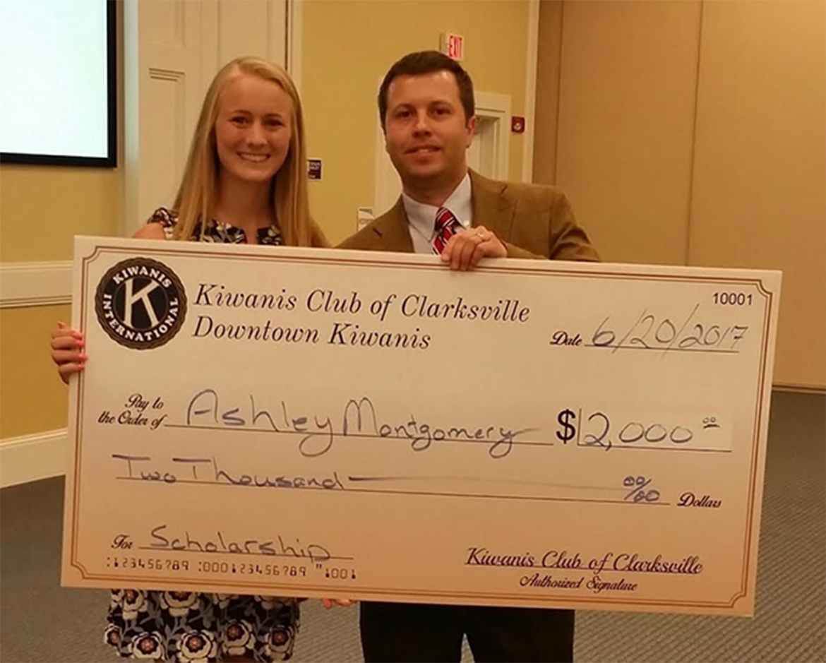 Kiwanis Club of Clarksville gave a scholarship to Ashley Montgomery and made a donation to Montgomery County Volunteer Fire Service.