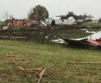 No injuries were reported by the twister that damaged several small barns and out buildings.
