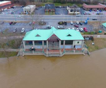 David E. Smith Aerial Photography captures Clarksville River District as flood conditions worsen.