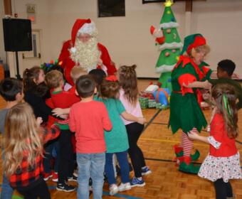 St. Bethlehem Elementary School students with the YMCA child-care program celebrate Christmas with a surprise party.