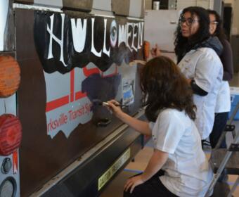Art students from Northeast High School have spread their painting talents on the CTS Spooky Special bus for Halloween.