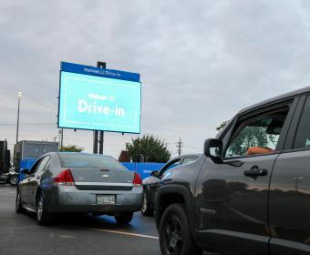 The parking lot at the Walmart Supercenter on Fort Campbell Boulevard became a drive-in movie theater last night, complete with a jumbotron, free snacks, and drinks for those in attendance.