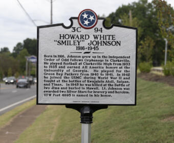 Today at 10am at the Whataburger on Madison Street was the unveiling of the new Tennessee Historical Marker for Howard White “Smiley” Johnson.