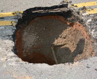 Clarksville Gas & Water has closed a section of Main Street between Fourth Street and University Avenue because of the development of a sinkhole.