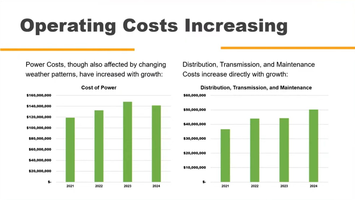 Taylor presented a slide on operating costs increasing and said that with building additional infrastructure, along with the growth, CDE Lightband’s power costs continue to rise.