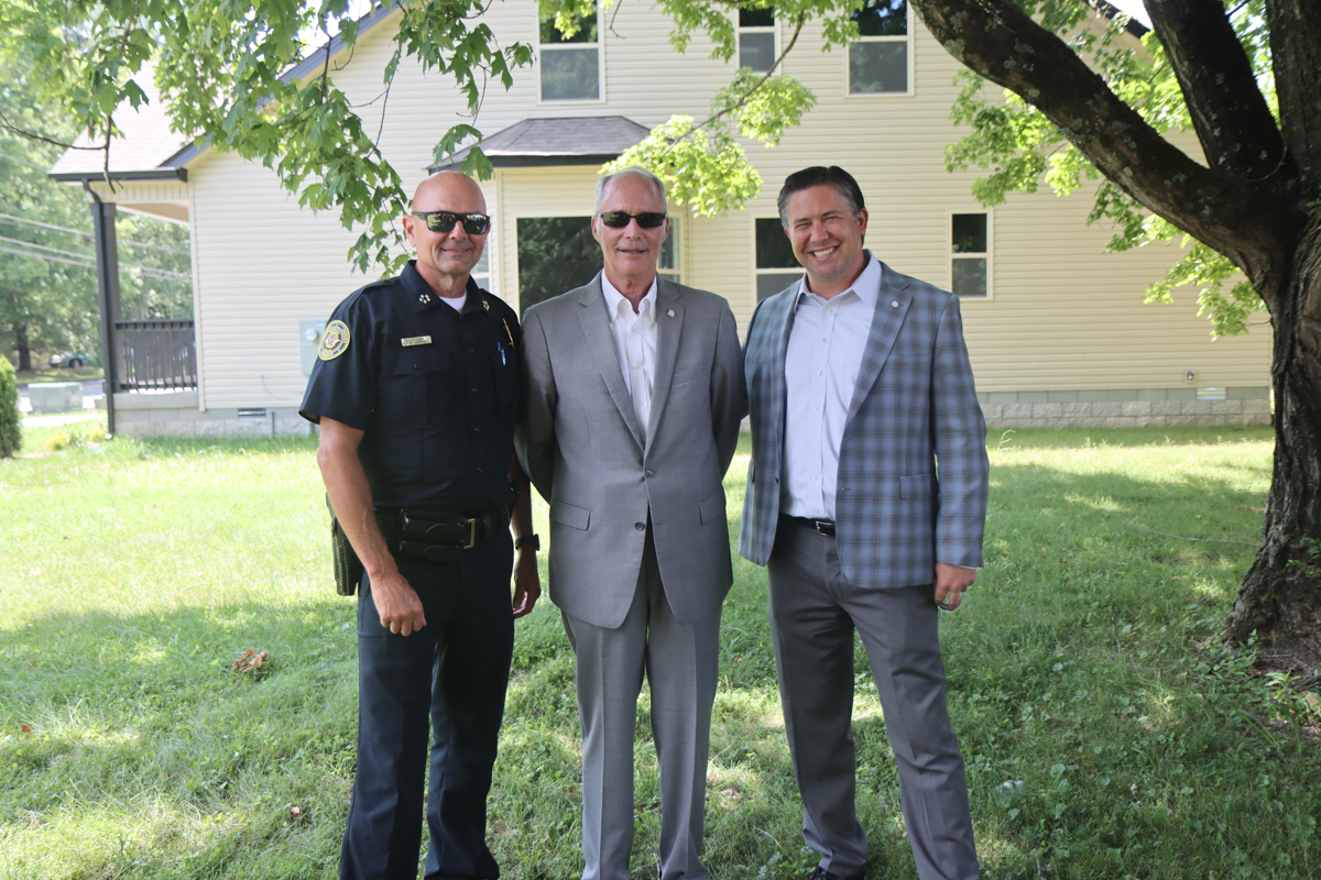 David Crockarell, Bill Harpel and Wes Golden at the groundbreaking for the new Centerstone crisis stabilization unit in Clarksville on July 11, 2024. (Hannah Hutchins)