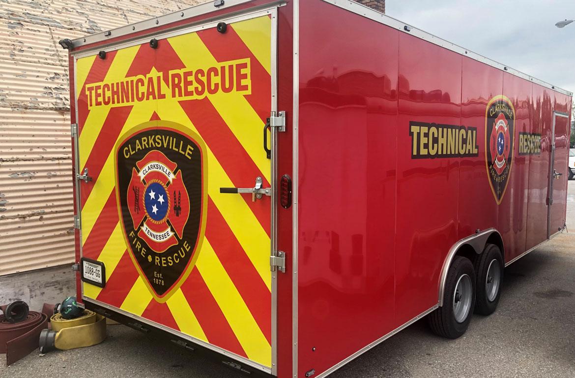 CLARKSVILLE, Tenn. — Clarksville Fire Rescue’s new Technical Rescue Trailer made its maiden voyage early Tuesday, April 7 , deploying to the scene of a vehicle extrication involving an individual trapped under a car inside of a home.