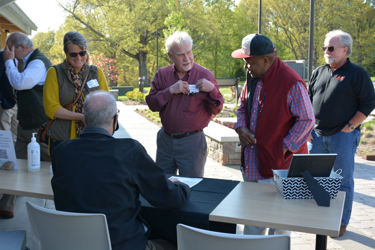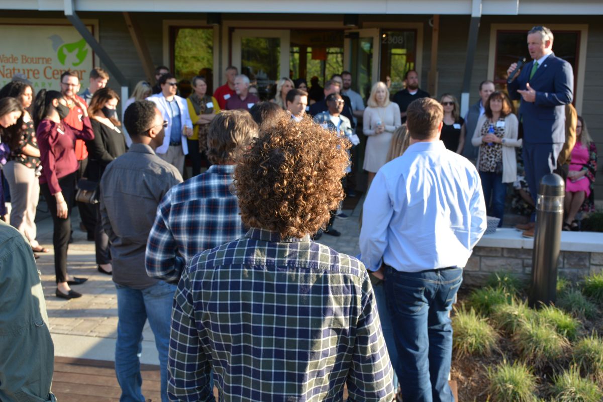 Guests enjoy the Clarksville Area Chamber of Commerce Business After Hours at the Wade Bourne Nature Center at Rotary Park on Thursday, April 15 2021. (Lee Erwin)