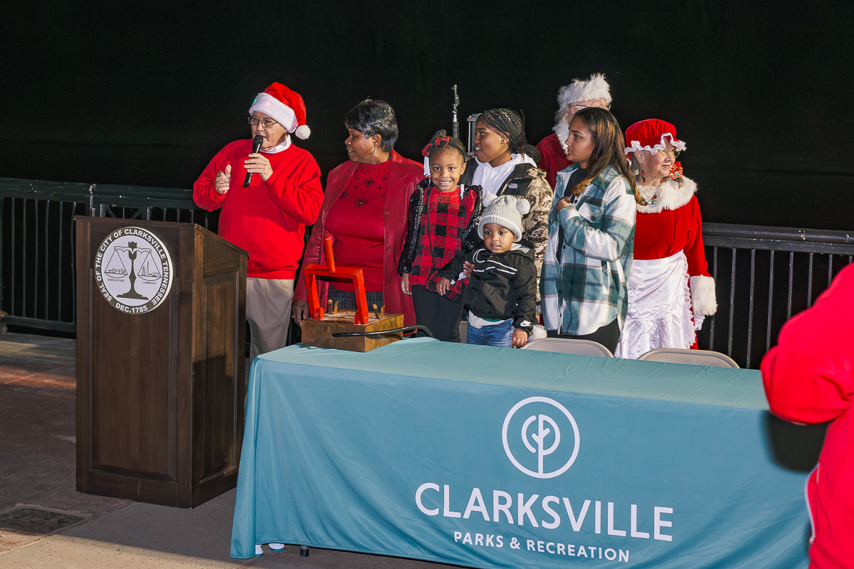 Clarksville City Council person Wanda Smith and family at the Christmas on the Cumberland Lighting at McGregor Park on Nov 18, 2023. (Wesley Irvin)