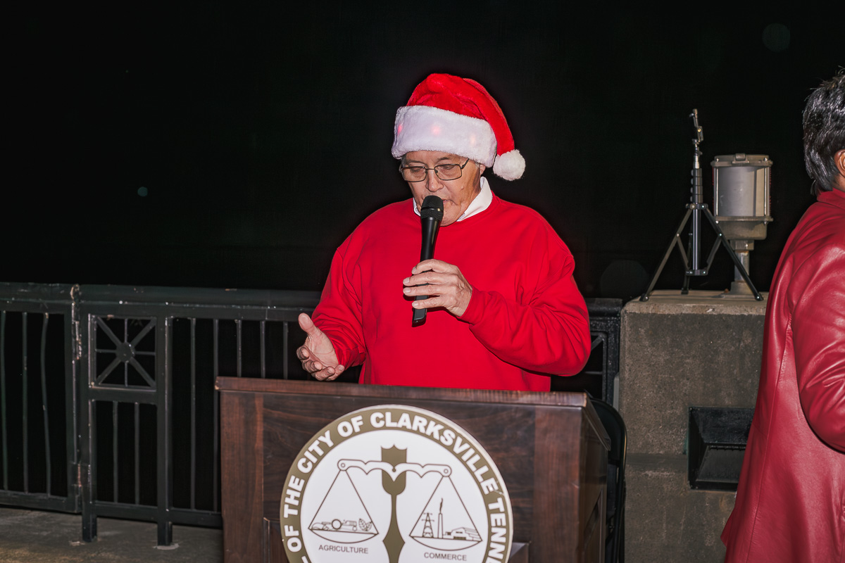 Emcee Lee Erwin at the Christmas on the Cumberland Lighting at McGregor Park on Nov 18, 2023. (Wesley Irvin)