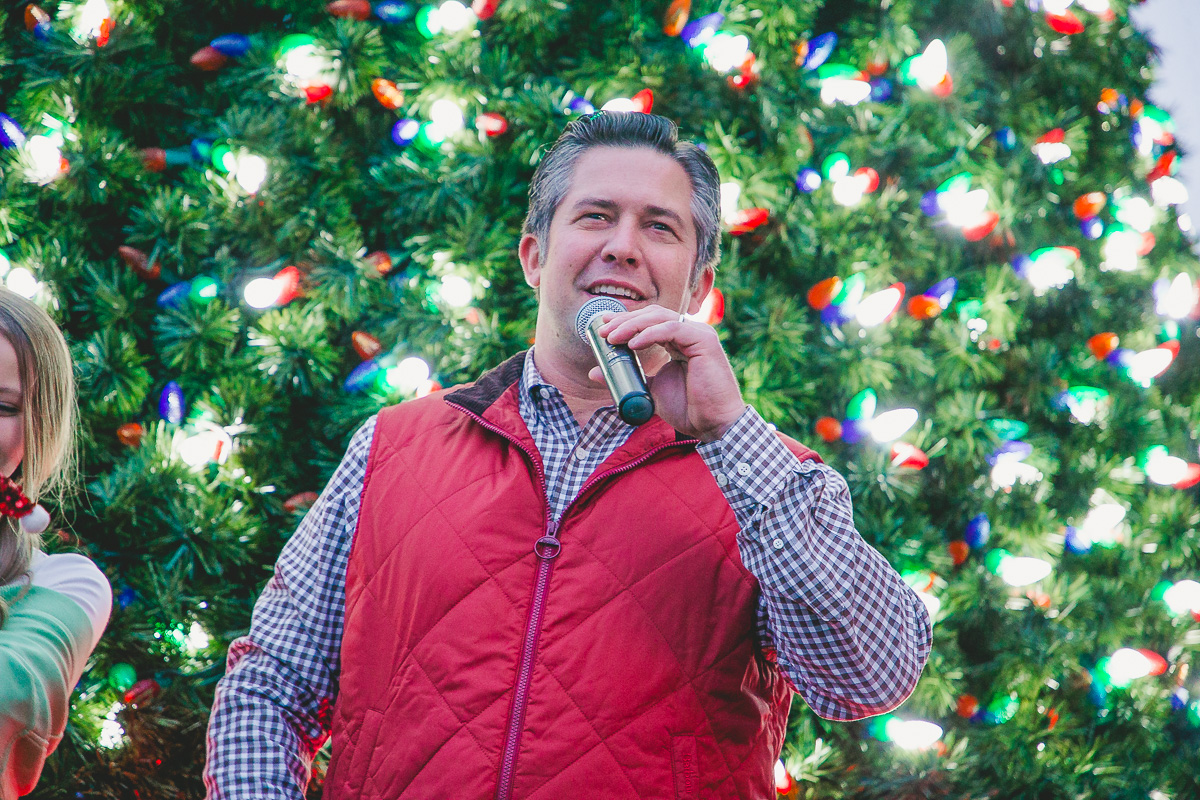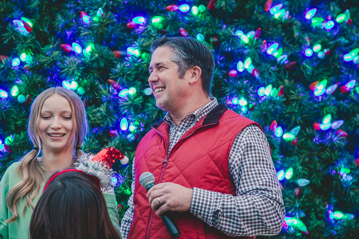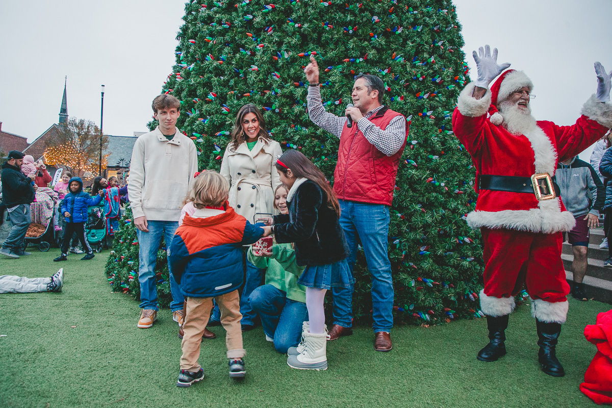 Montgomery County Mayor Wes Golden and his family light the Downtown Clarksville Christmas Tree on December 2, 2023. (Wesley Irvin)
