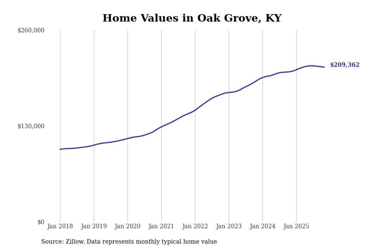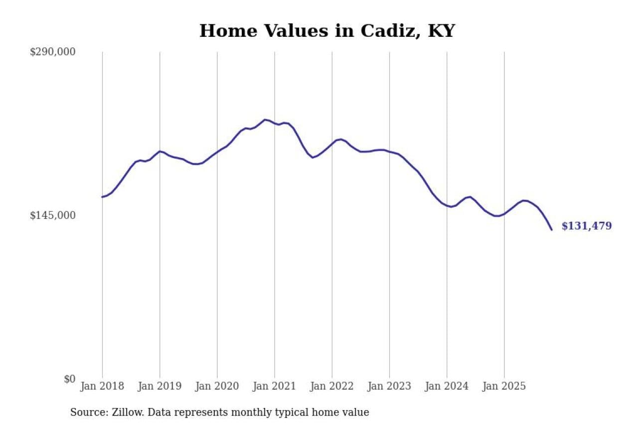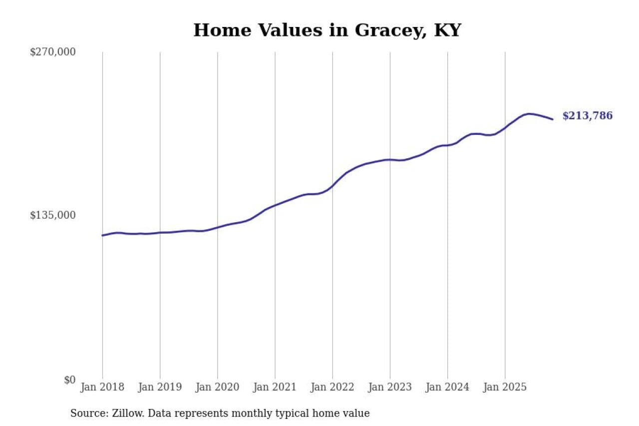 Stacker compiled a list of cities with the most expensive homes in the Clarksville, TN-KY metro area using data from Zillow. Charts show the monthly typical home value since January 2018.