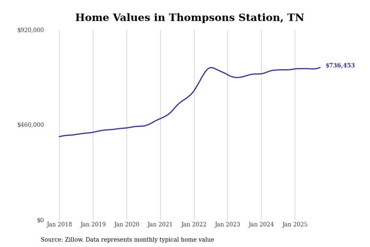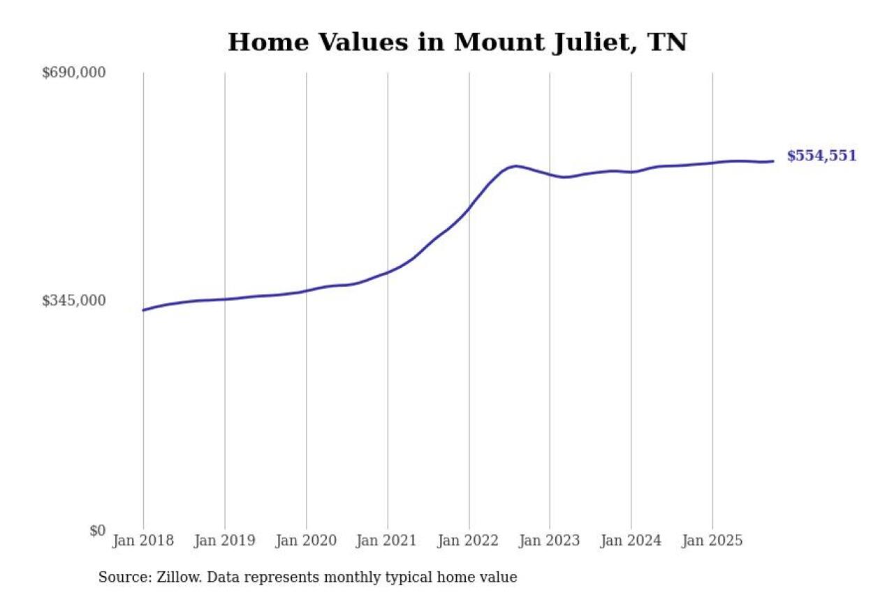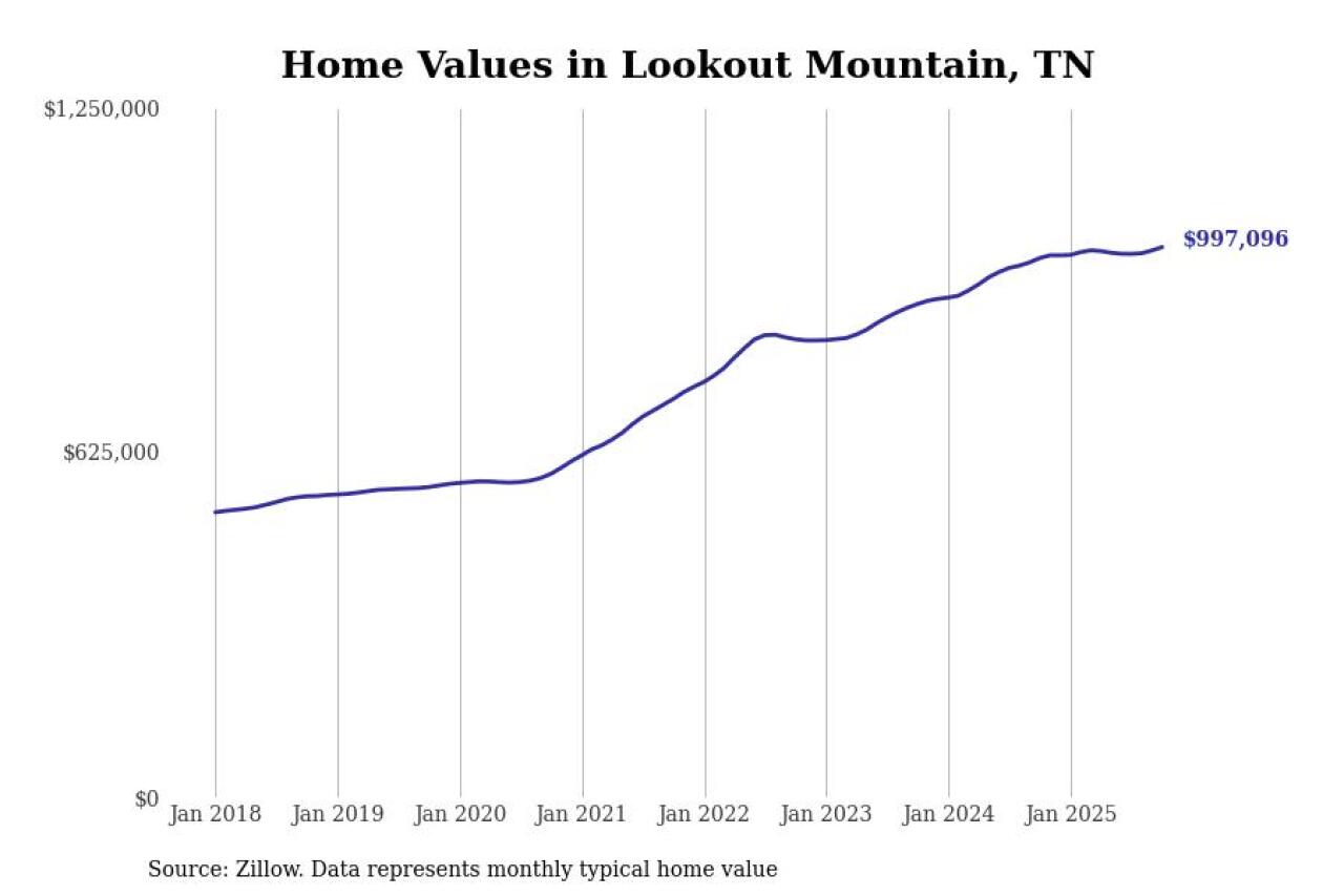Stacker compiled a list of cities with the most expensive homes in Tennessee using data from Zillow. Cities are ranked by the Zillow Home Values Index for all homes as of October 2025. The charts in this story were created automatically using Matplotlib.