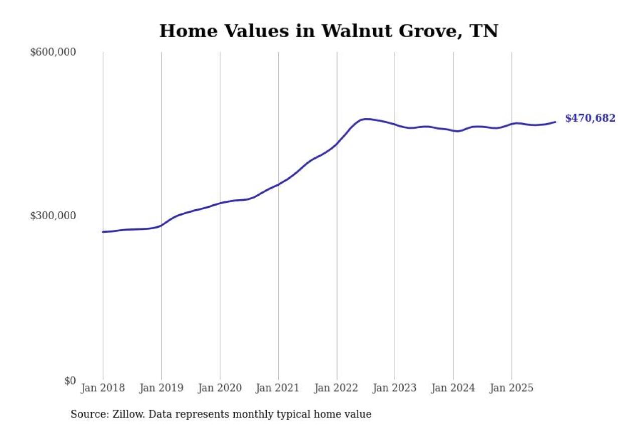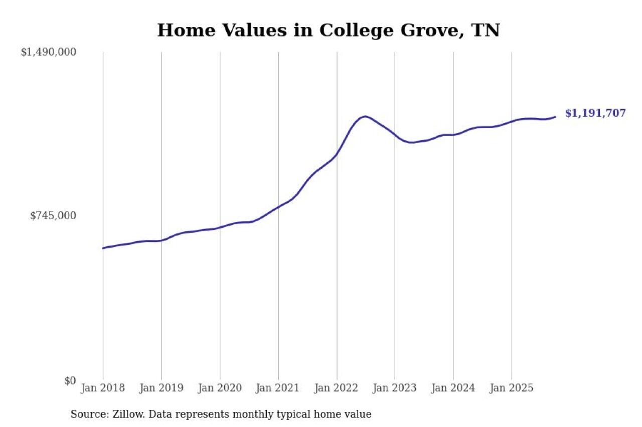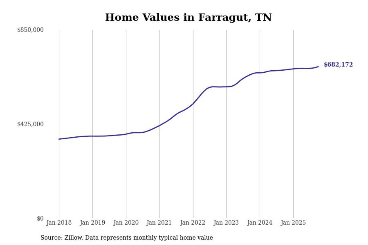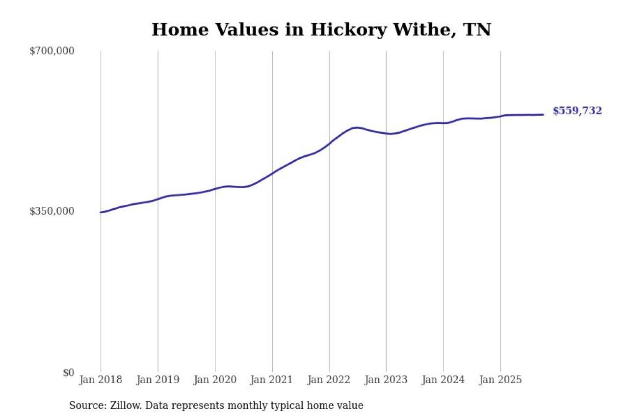 Stacker compiled a list of cities with the most expensive homes in Tennessee using data from Zillow. Cities are ranked by the Zillow Home Values Index for all homes as of October 2025. The charts in this story were created automatically using Matplotlib.