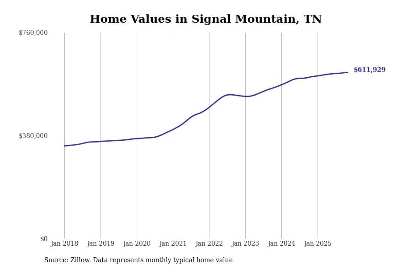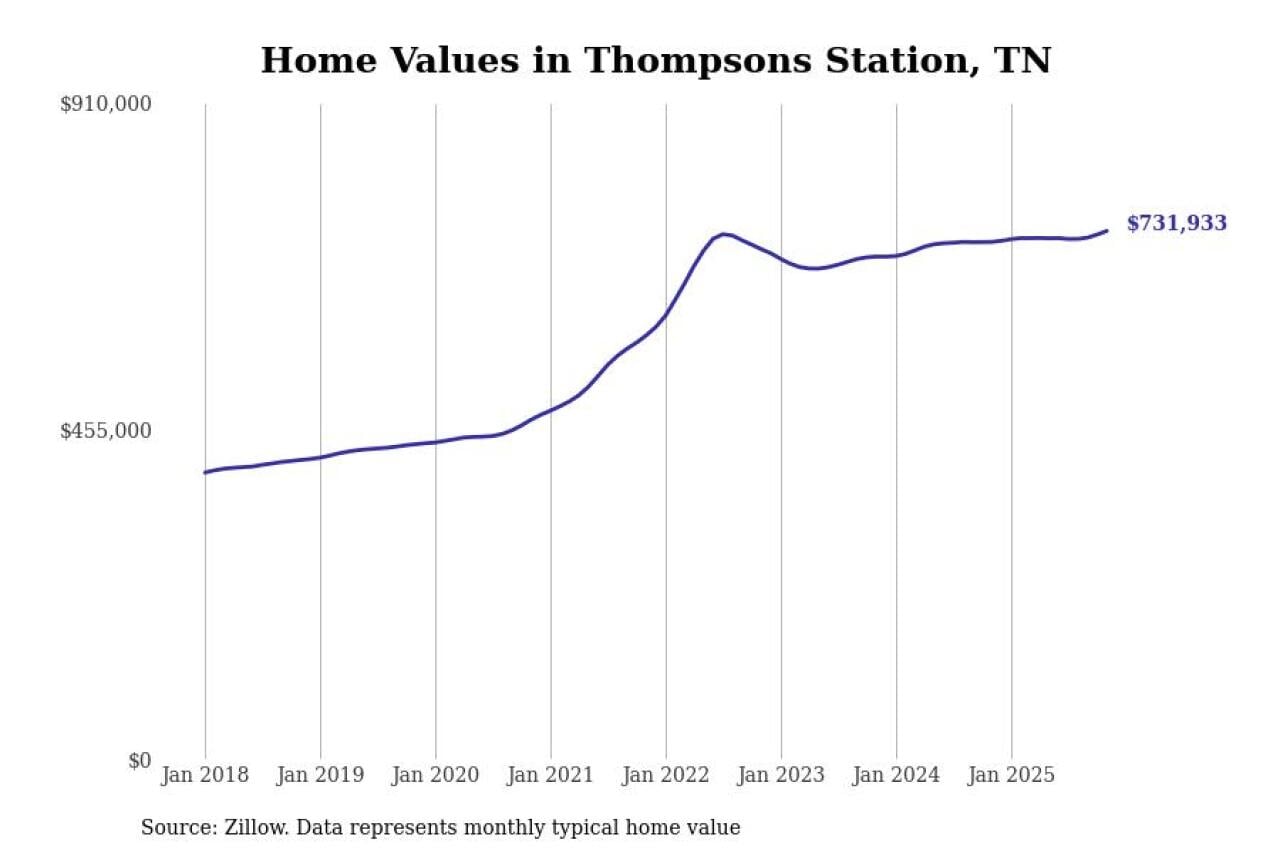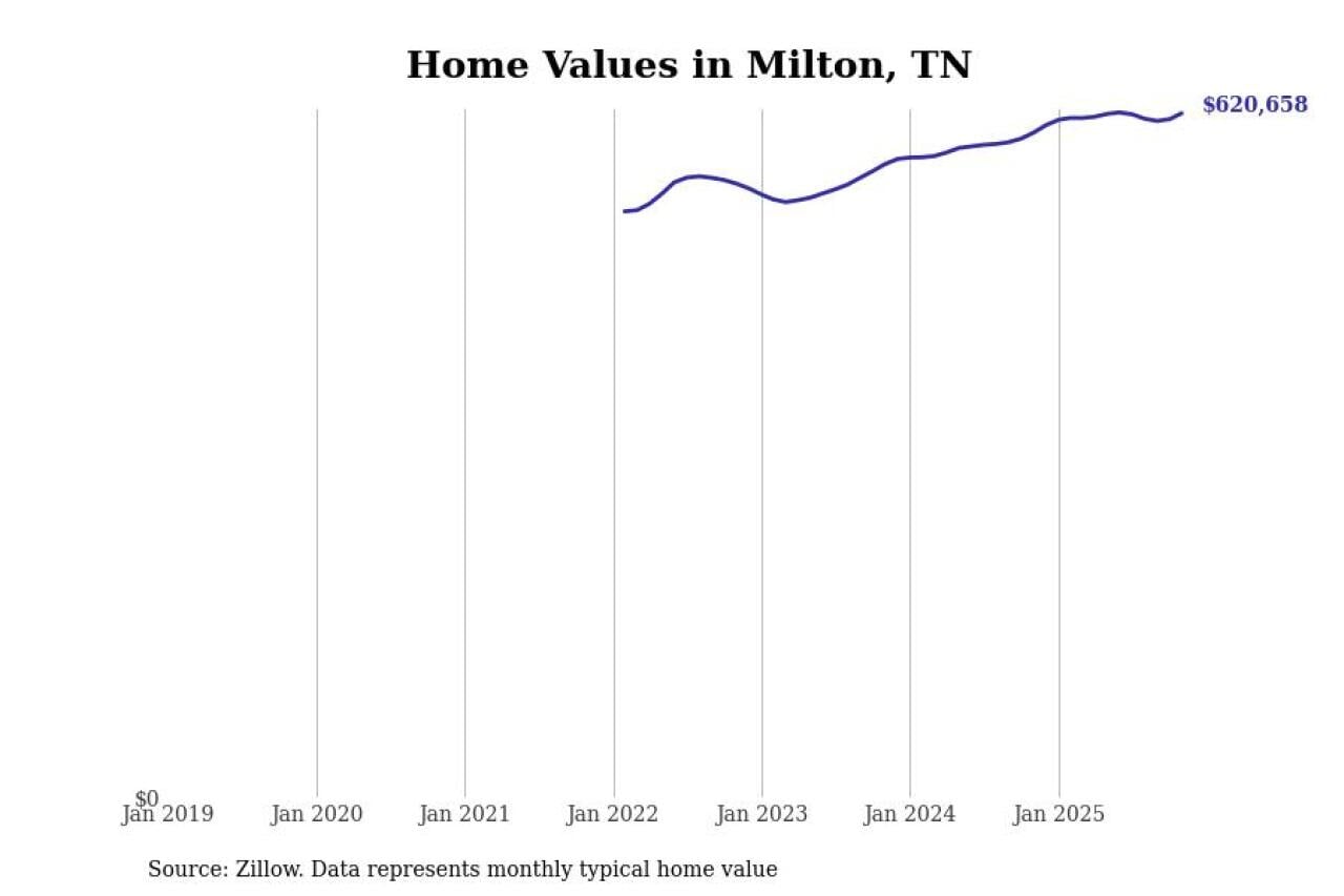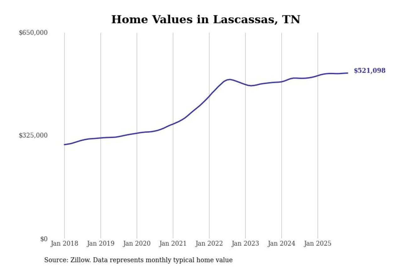 Stacker compiled a list of cities with the most expensive homes in Tennessee using data from Zillow. Cities are ranked by the Zillow Home Values Index for all homes as of November 2025. The charts in this story were created automatically using Matplotlib.