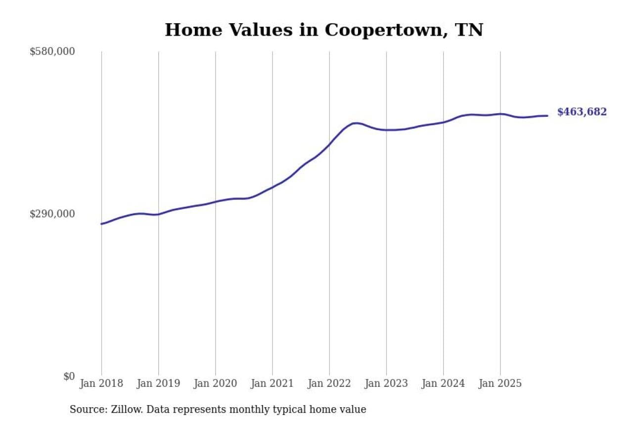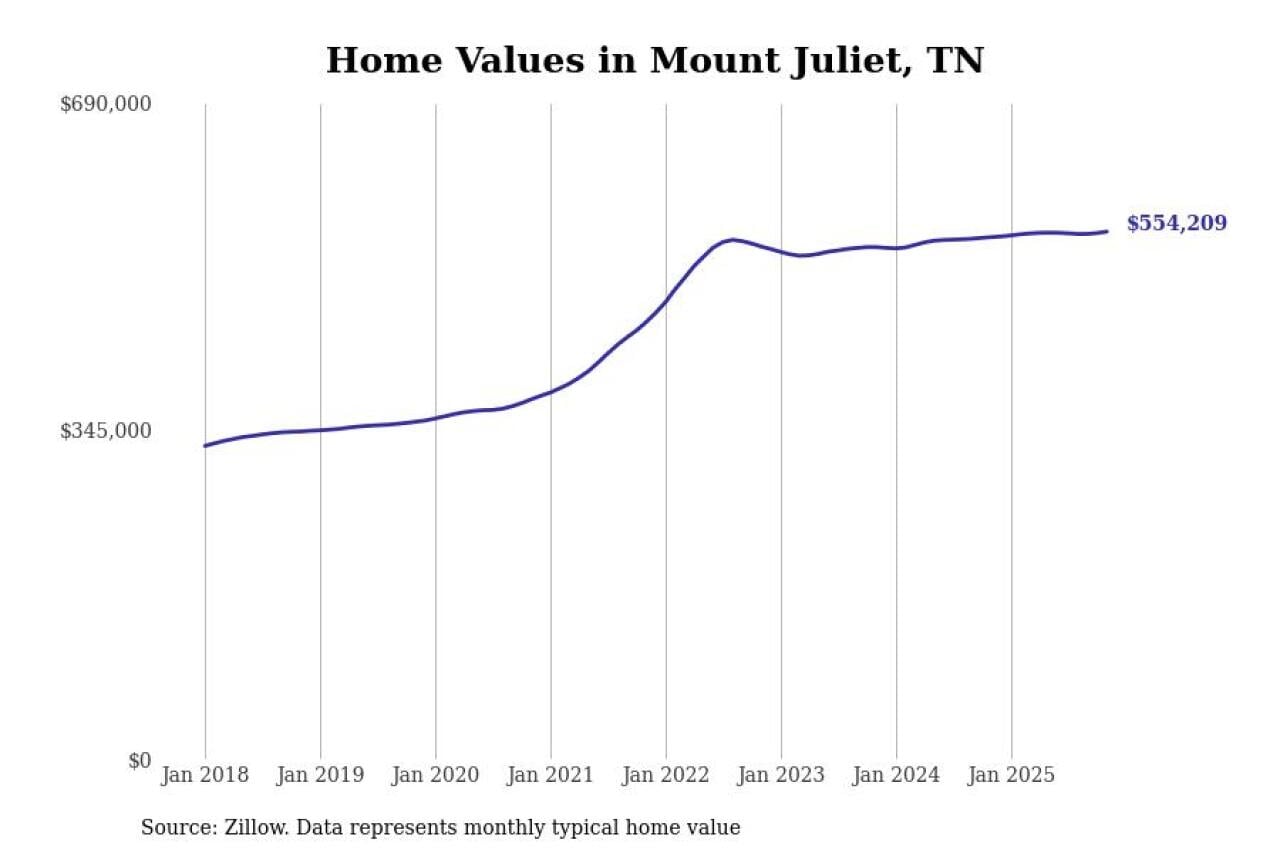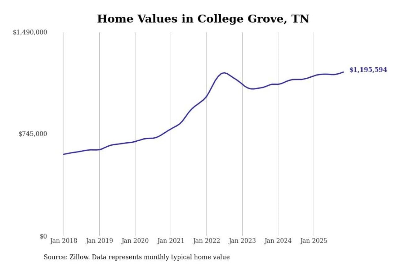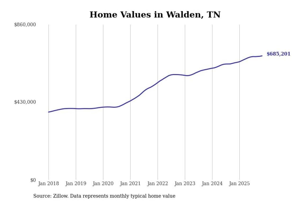 Stacker compiled a list of cities with the most expensive homes in Tennessee using data from Zillow. Cities are ranked by the Zillow Home Values Index for all homes as of November 2025. The charts in this story were created automatically using Matplotlib.
