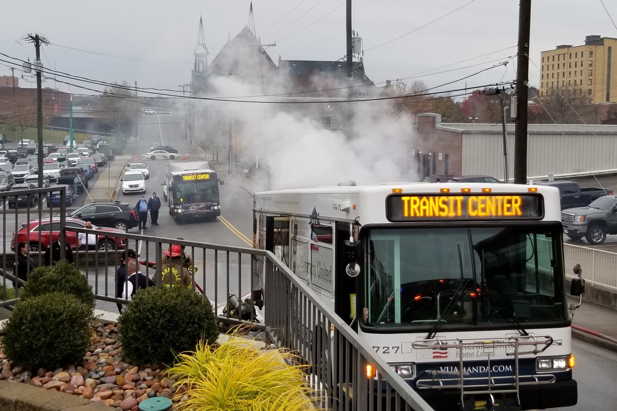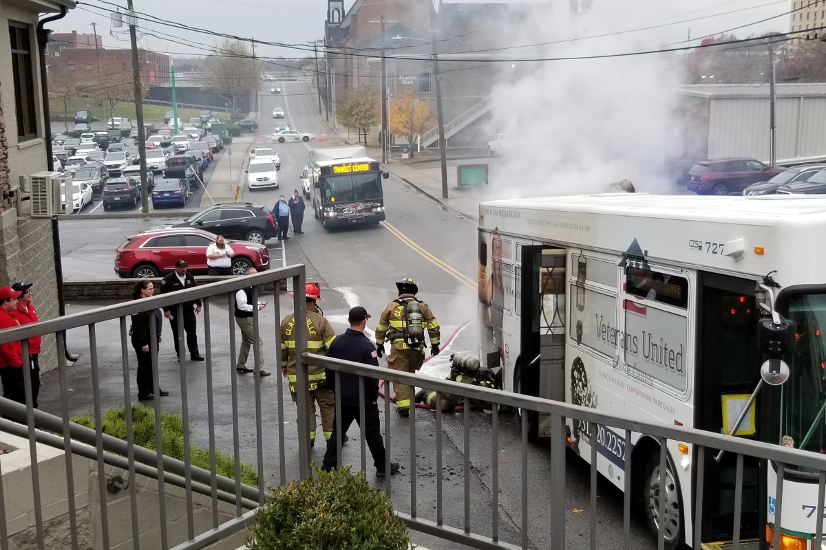 CLARKSVILLE, TN (CLARKSVILLE NOW) – A Clarksville Transit System bus caught fire downtown this morning.