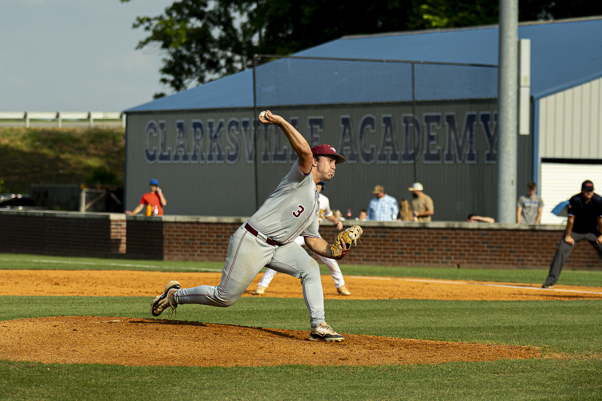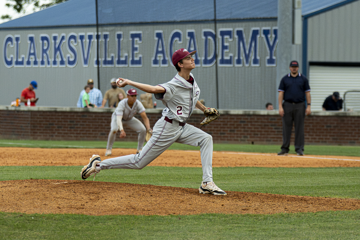 Brennen Gibson as The Clarksville Academy Cougars defeated Evangelical Christian in game two of the Regional Finals on May 14, 2025 (Jeff Danault)