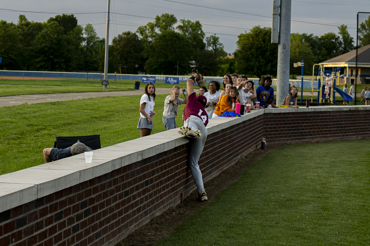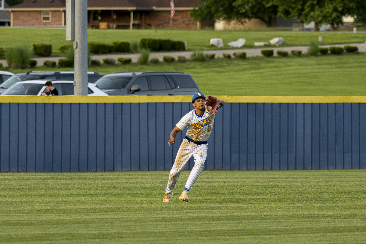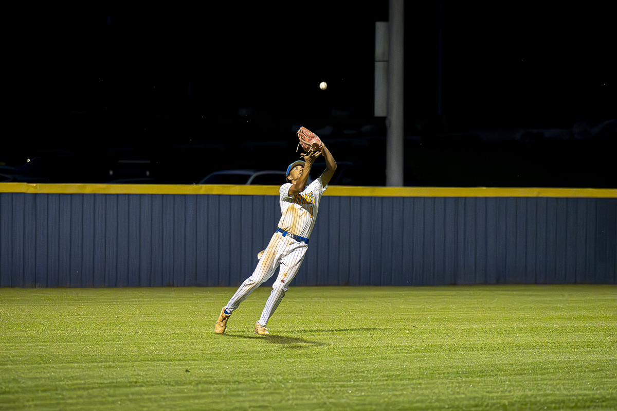 #0 Floyd Dodwell of the Clarksville Academy makes the catch in left field against Evangelical Christian in the Regional Finals on May 14, 2025 (Jeff Danault)