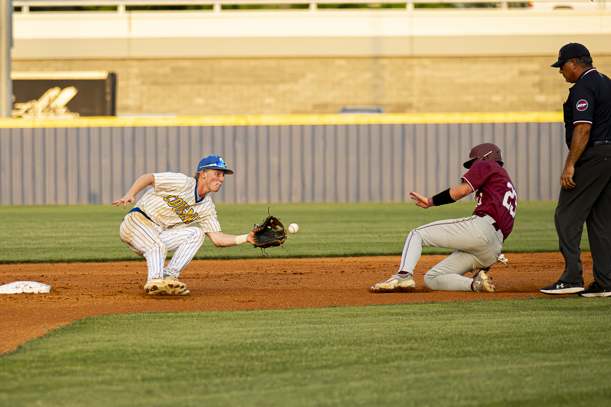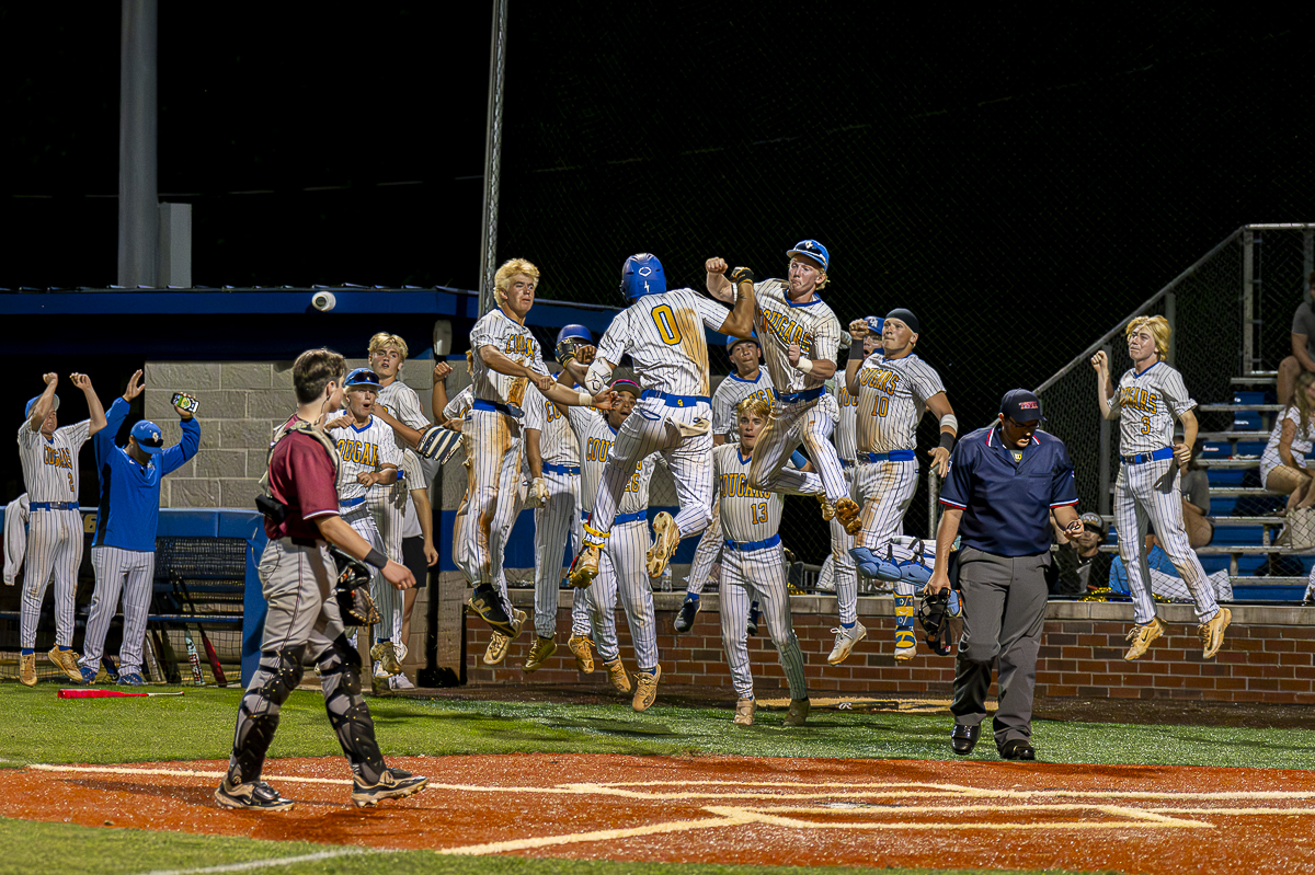 In game two, it was an instant classic. Cougars junior shortstop Colt Wallace drove in a run in the top of the fifth to give Academy the lead, but the Eagles took it right back in the bottom of the same inning. However, CougarFloyd Dodwell responded with a no-doubter solo homer to take the lead, and Jalon Page finished his complete game on the mound, striking out eight to earn the win and the sweep, and a berth in the final four of the state tournament.