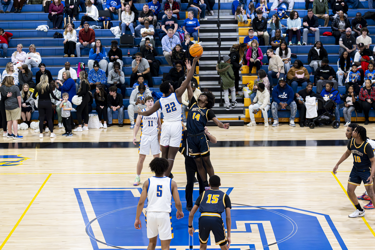 Early on, the Cougars were able to stifle Northeast defensively, contesting shots consistently and taking away open shots for the Eagles. Northeast High only scored six points in the second quarter, as Clarksville Academy led 31-15 at half.