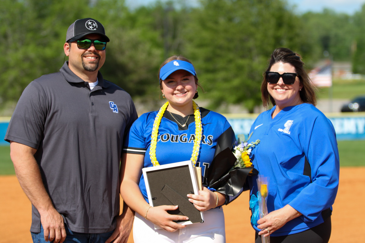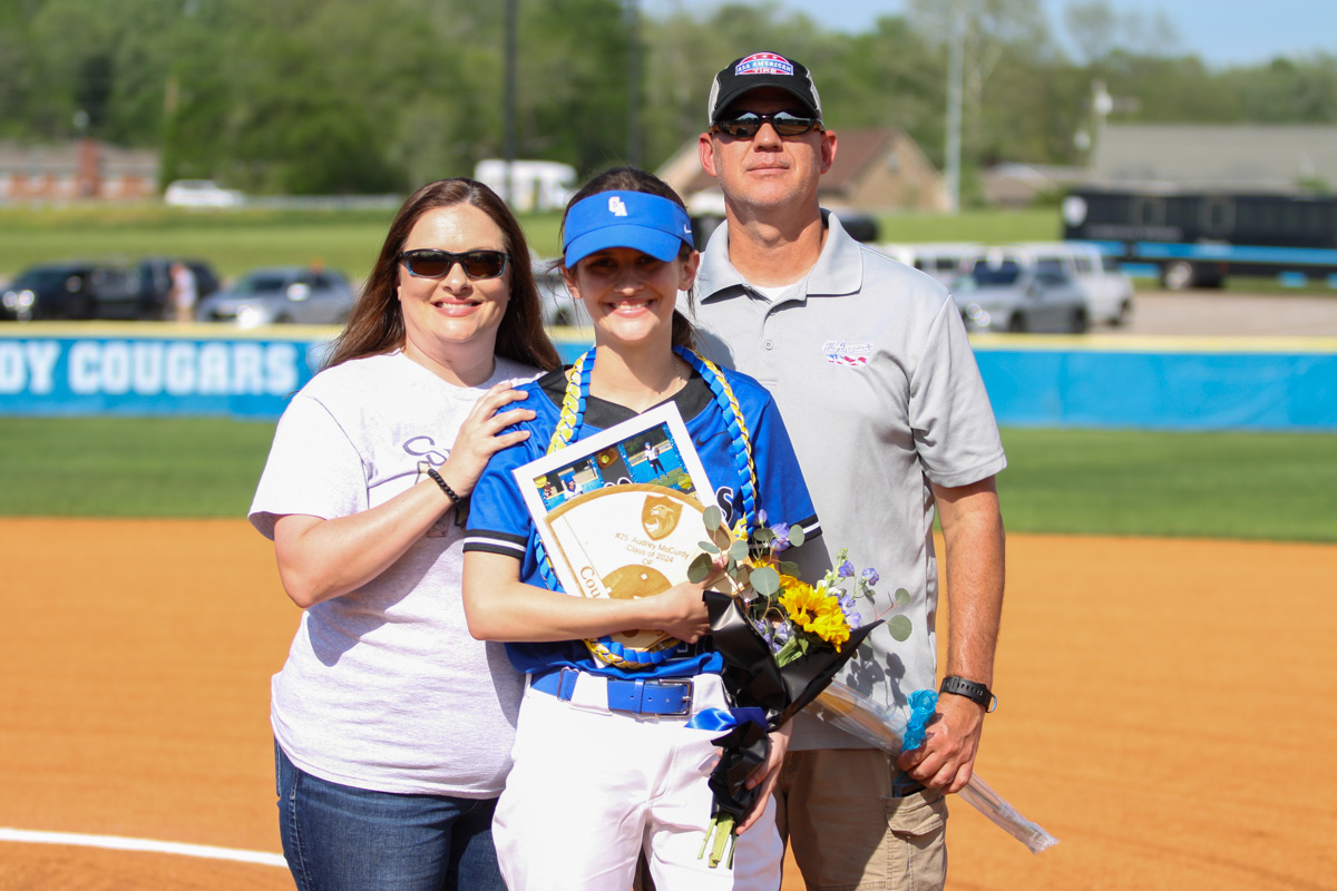 CLARKSVILLE, TN (CLARKSVILLE NOW) – The Clarksville Academy Cougars softball team hosted the Ezell-Harding Eagles for a district matchup on a sunny Wednesday afternoon. Before the game, the senior athletes were honored, and they shined during the game, leading to a 13-1 win for the Cougars.