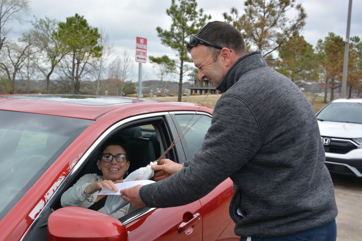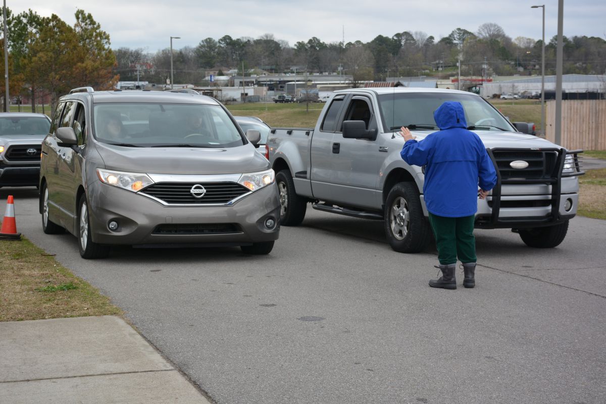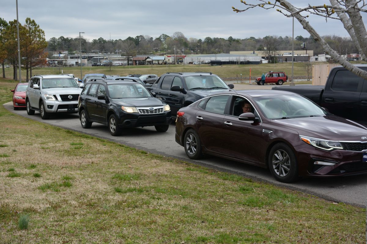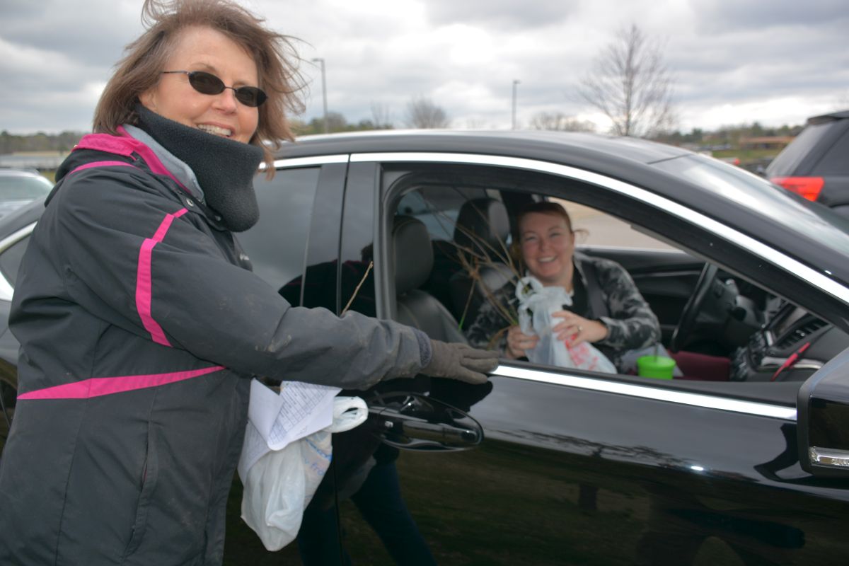 Close to 40 volunteers helped with the drive-thru giveaway near Freedom Point at Liberty Park.