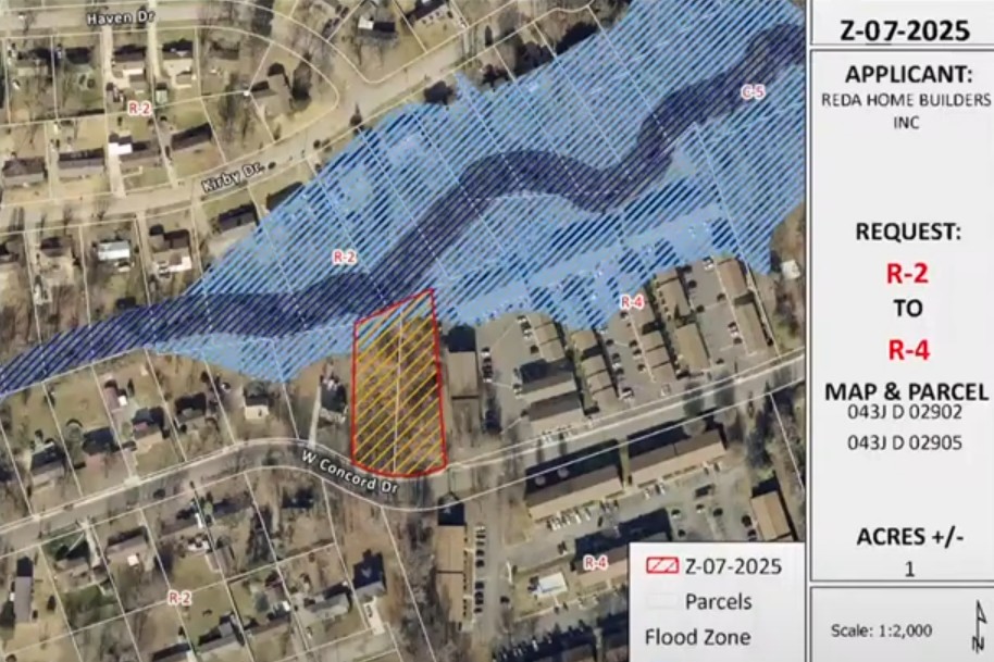 CLARKSVILLE, TN (CLARKSVILLE NOW) – After hearing the cases for and against a potential zone change north of West Concord Drive, the City Council voted down the proposal that would have transitioned 1 acre from R-2 single family residential to R-4 multiple family residential.